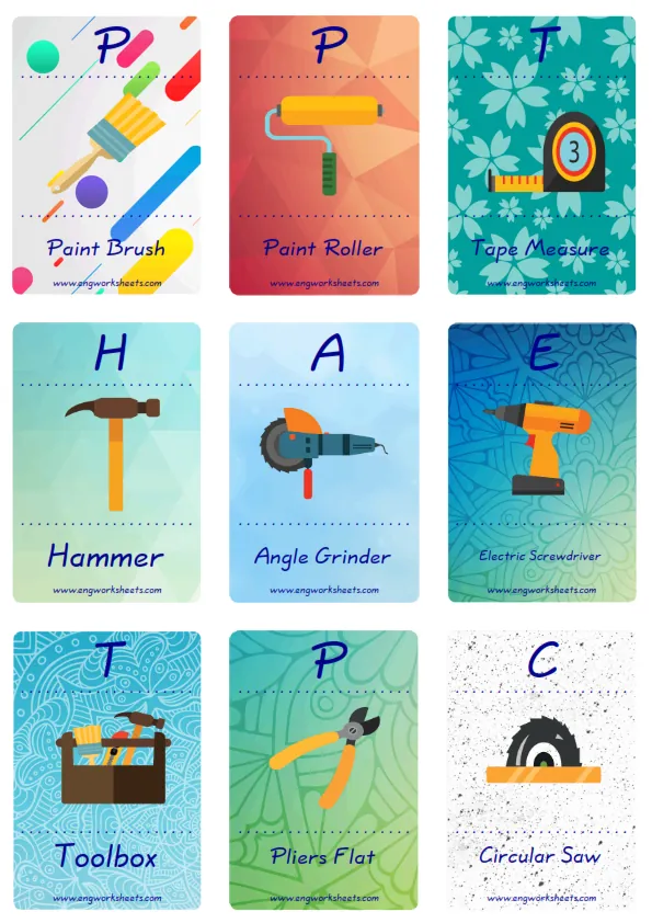 Mini size enjoyable ESL Flashcard Construction Tools for kids and teachers.