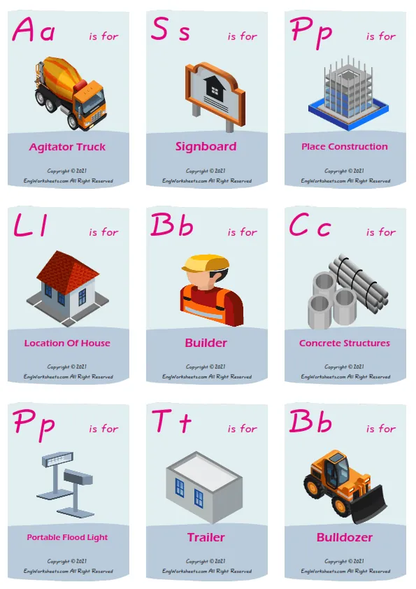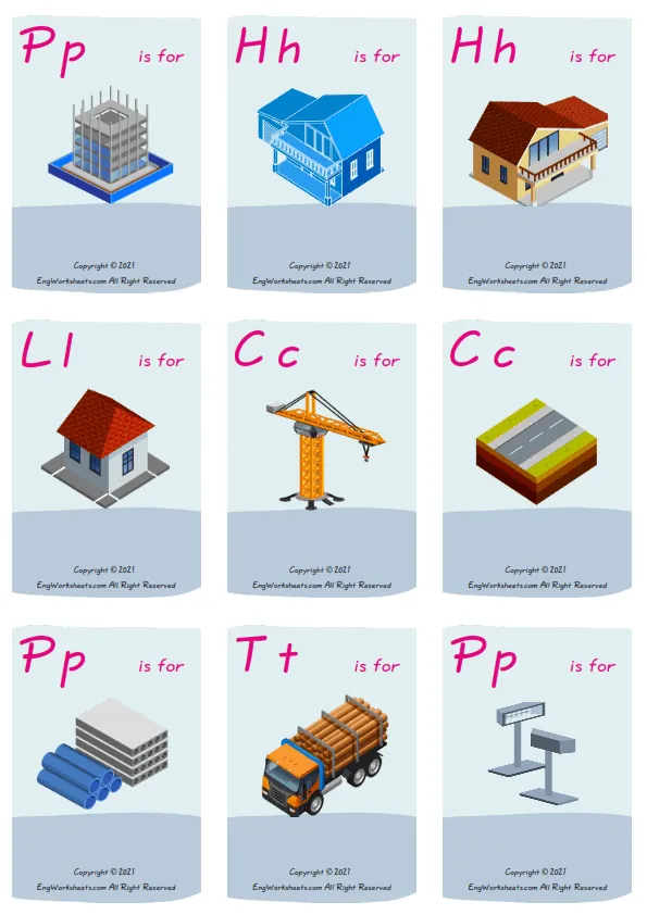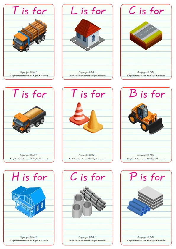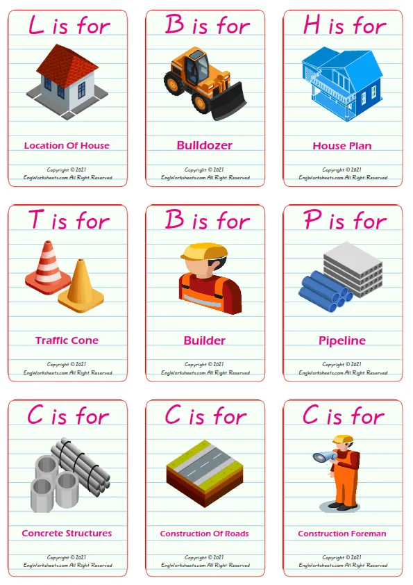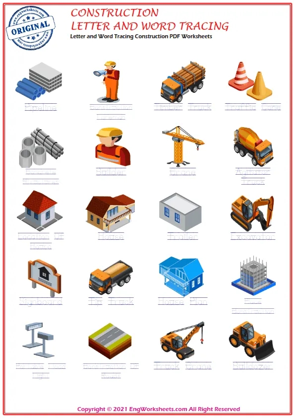 Our Construction English worksheet with a snake-shaped design for kids. From the starting point, you need to write the Construction words according to the numbers of the pictures below. An activity that will give you the habit of writing correctly in English. Correct answers are given on the second page.