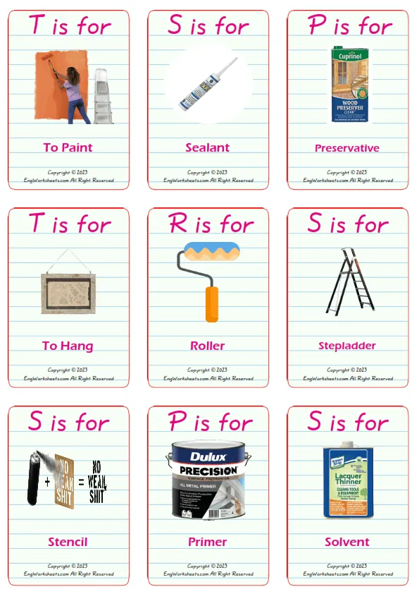Decorating English Printable Picture Dictionary Worksheet For Kids
