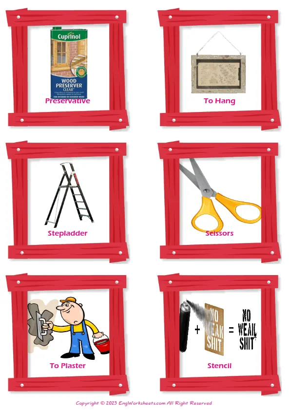 Flashcard pictures of the Decorating given without words, with nine pictures on a page with a different design. You can print our worksheet prepared using Decorating pictures in different sizes and use it for remembering in your classroom or at home. Using thick paper, you can use it with your friends to carry it in your pocket or purse at all times or to play games in the classroom. Thus, learning will become much more fun.