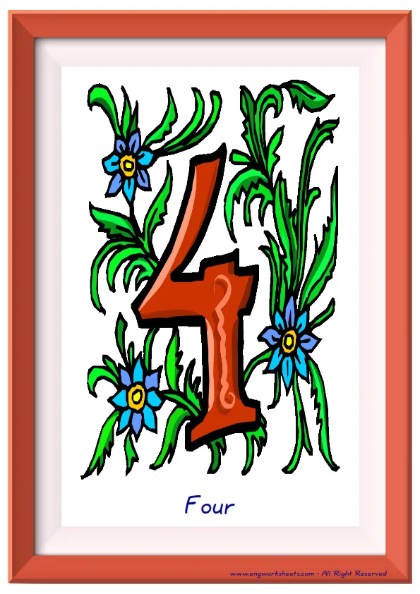 Quarter page ESL Flashcard together with words containing Number picture for kids and teachers.