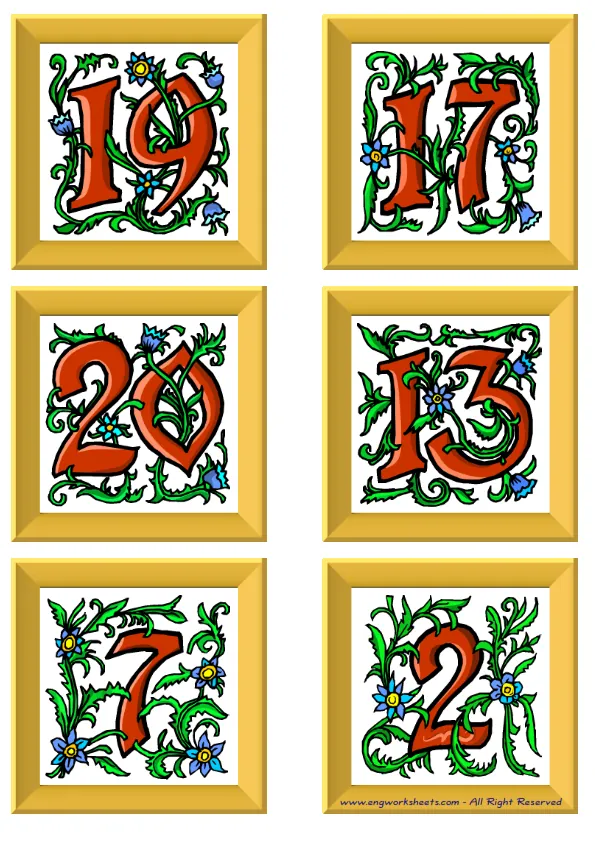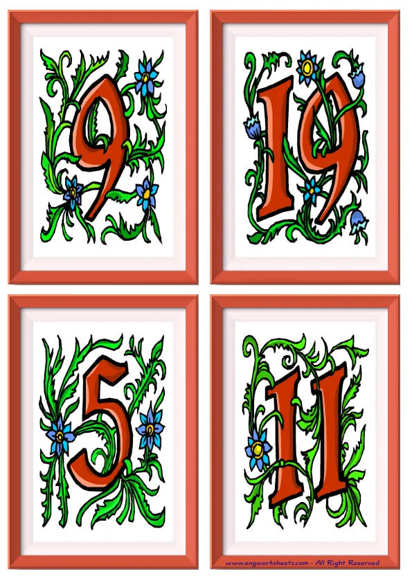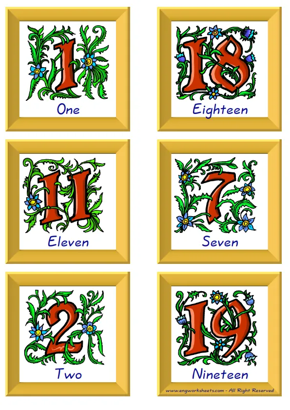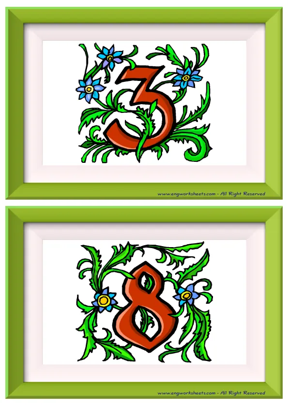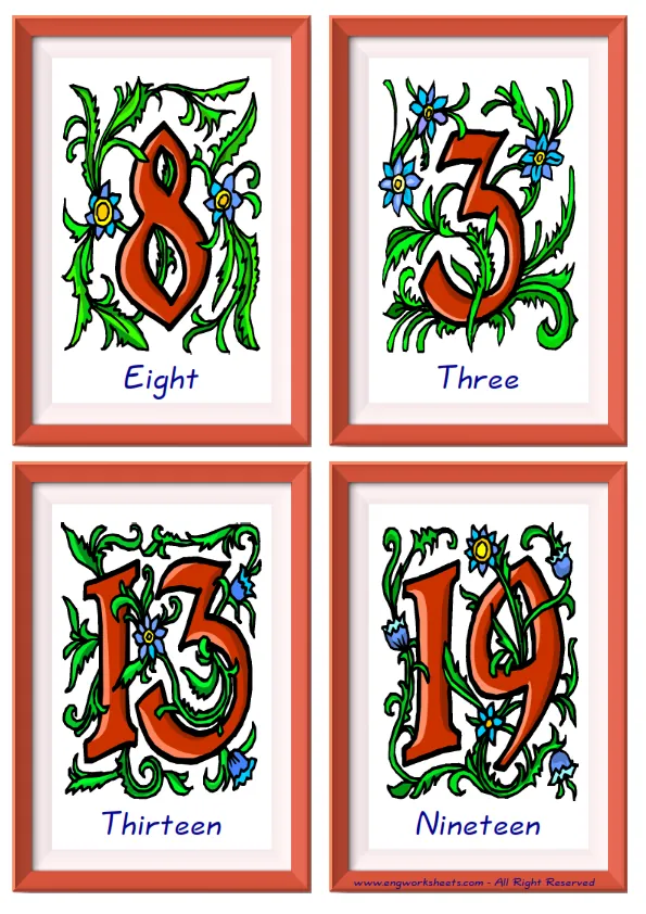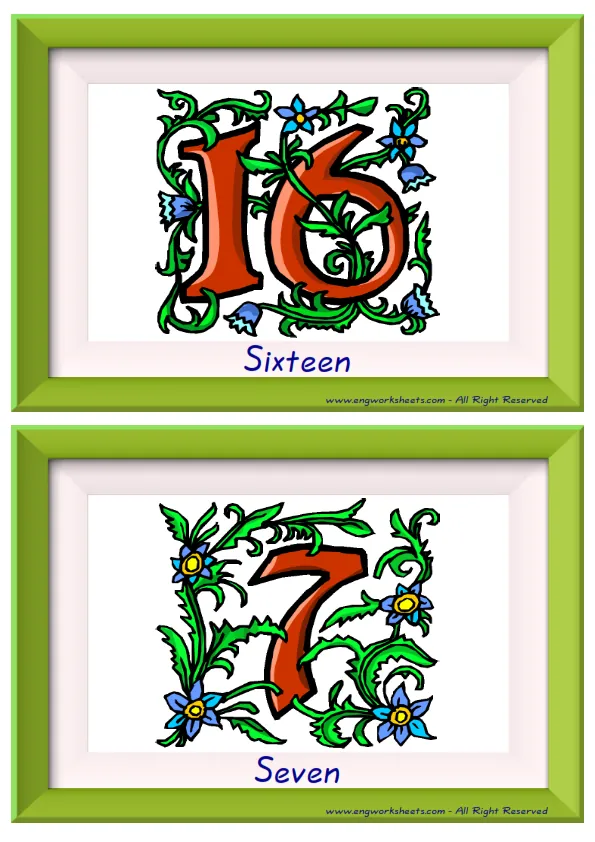 ESL Flashcard together with words containing Number picture for kids and teachers.