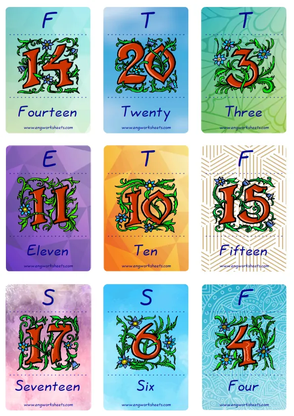Mini size enjoyable ESL Flashcard Number for kids and teachers.