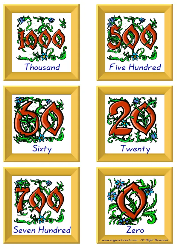 ESL Flashcard together with words containing Number picture for kids and teachers.