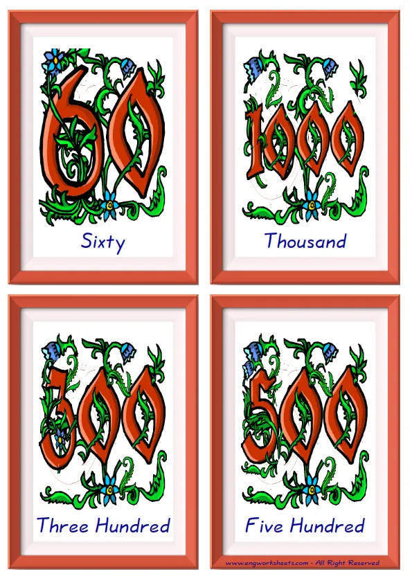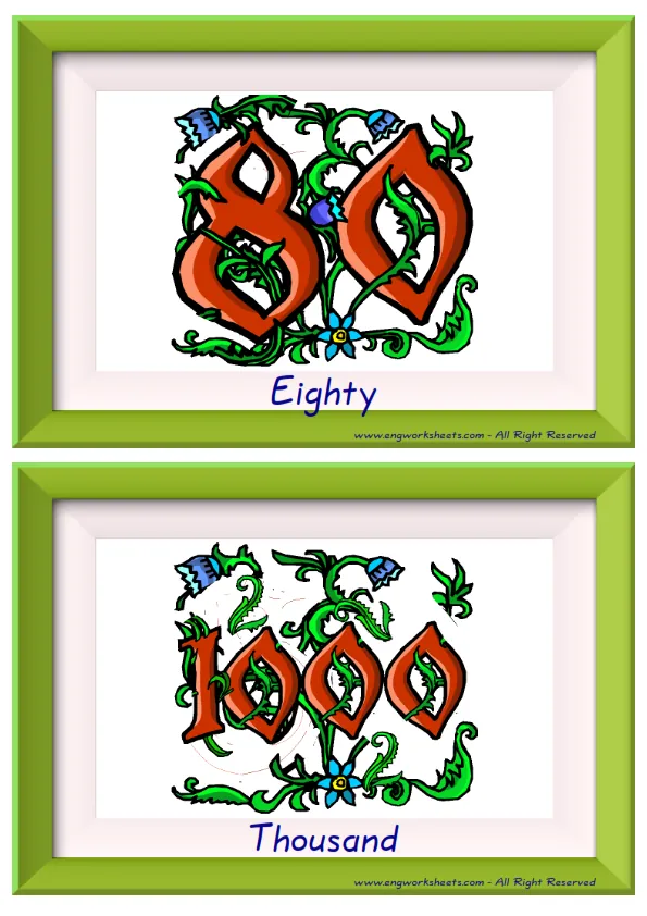 Half page ESL Flashcard together with words containing Number picture for kids and teachers.