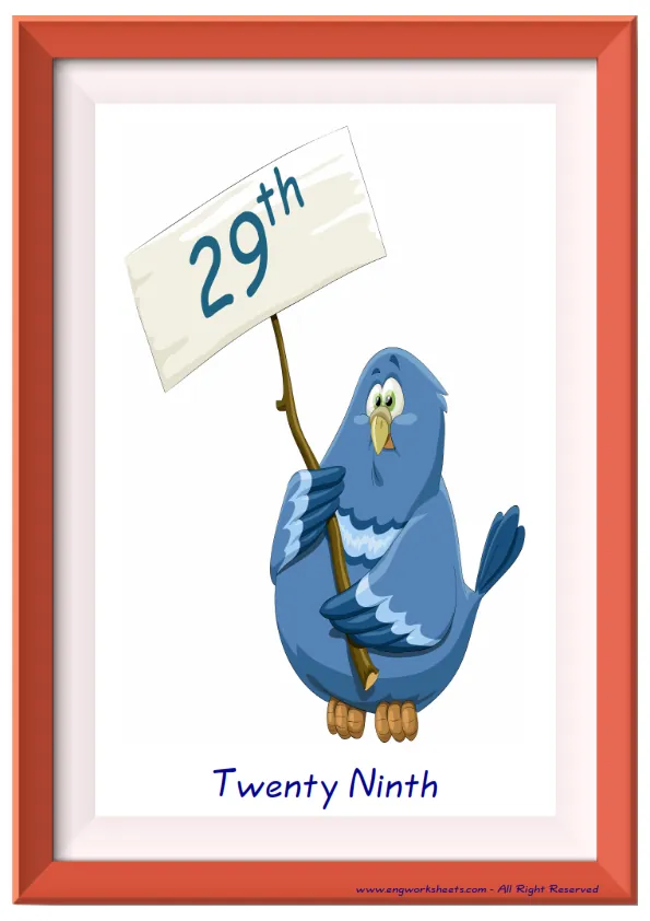 Mini size enjoyable ESL Flashcard Ordinal Numbers for kids and teachers.