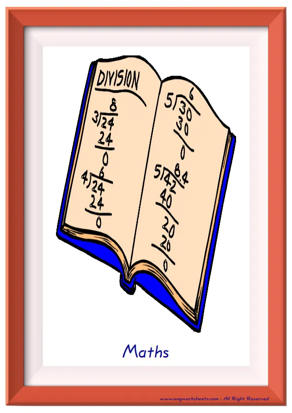 Half page ESL Flashcard without words containing School Subjects picture for kids and teachers.