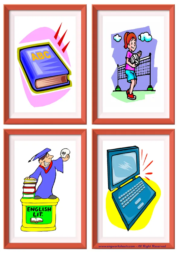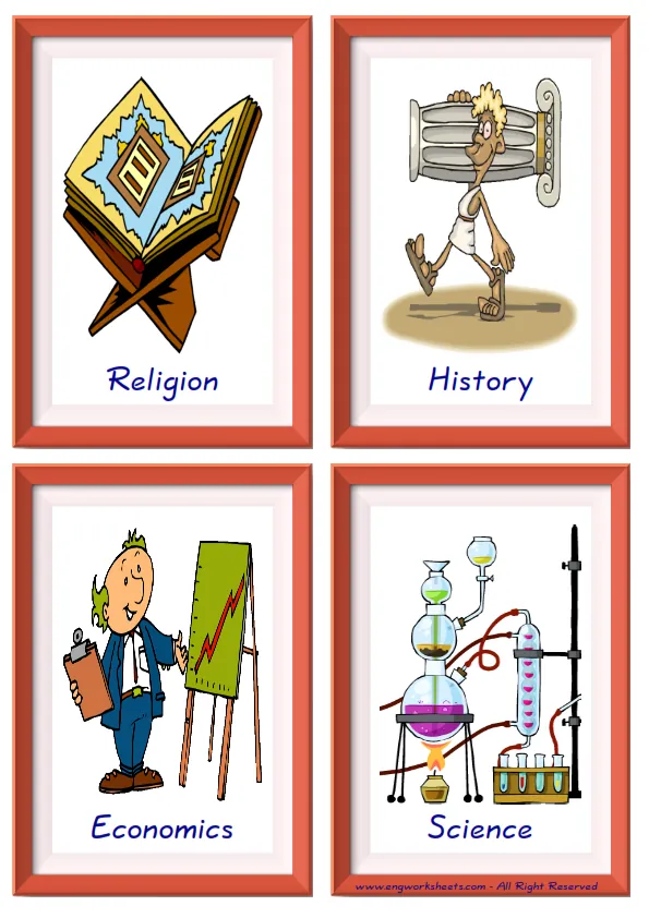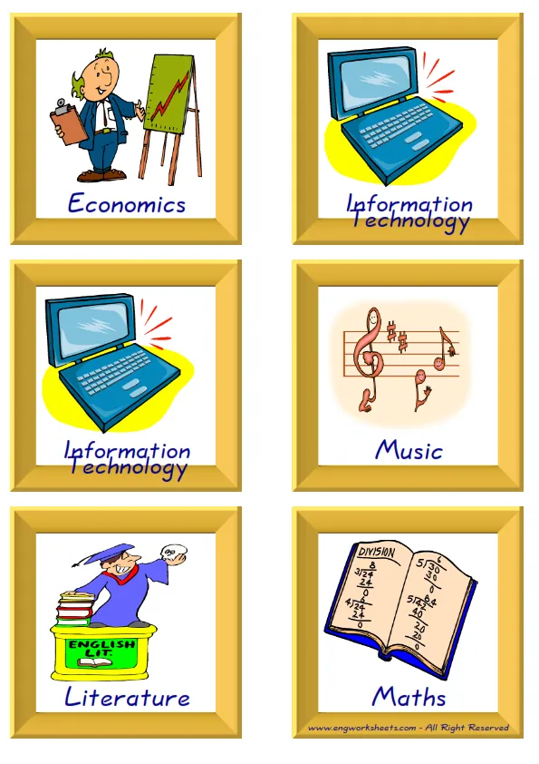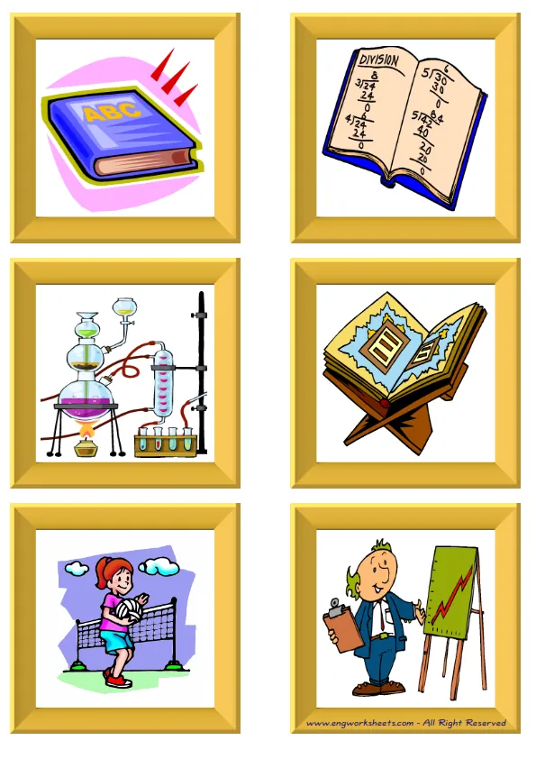 ESL Flashcard without words containing School Subjects picture for kids and teachers.