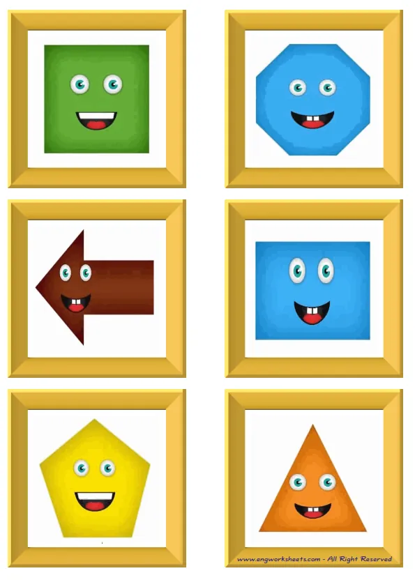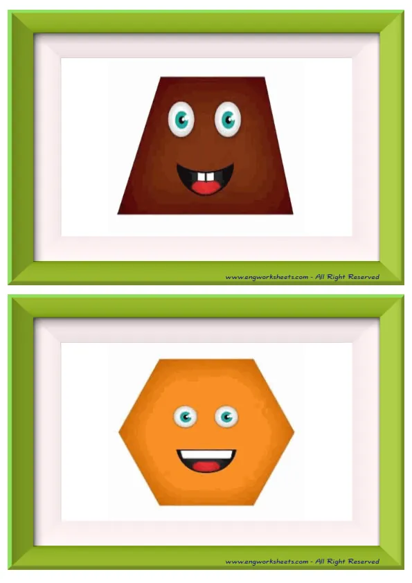 Full page wordless Shapes pictures flashcard. You can print our worksheet prepared by using Shapes pictures in A4 or A3 size and use it for recall in your classroom or at home.