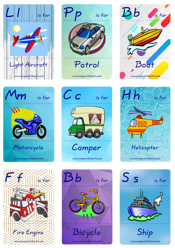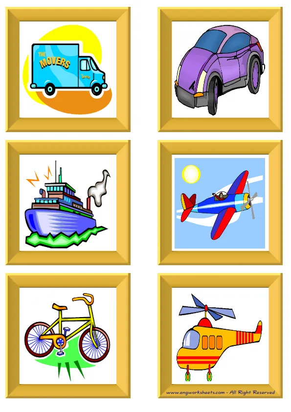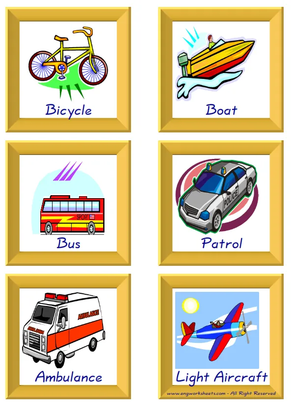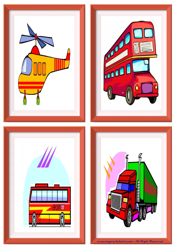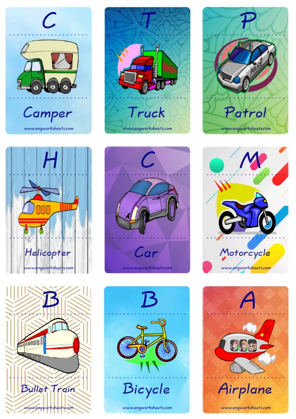 Mini size enjoyable ESL Flashcard Transportation for kids and teachers.