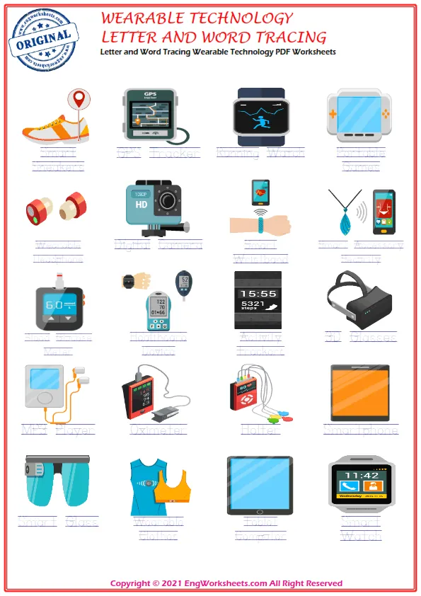 Letter and Word Tracing Wearable Technology PDF Worksheets