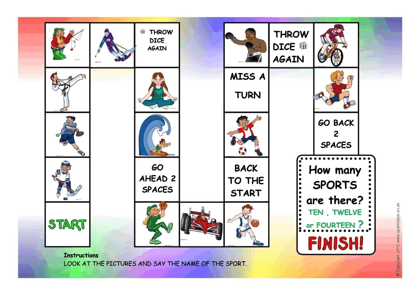 A Simple Board Game To Practise Basic Sports Vocabulary.