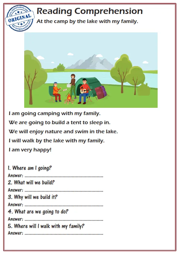 Looking for fun and educational reading comprehension worksheets for kids? "At the Camp by the Lake with My Family" is a great topic to engage young learners while improving their reading skills. These worksheets feature a relatable story about a family's camping trip, complete with comprehension questions and vocabulary exercises. Whether you're a teacher, parent, or tutor, these worksheets are perfect for reinforcing reading comprehension strategies and vocabulary development. Download them today and get your kids excited about reading!