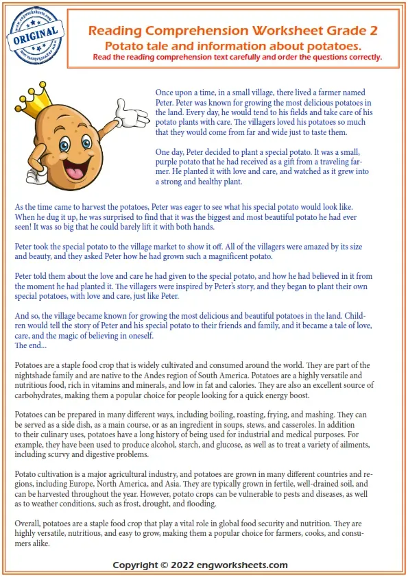 English Esl Potato Tale Reading Comprehension Worksheet 3Rd Grade, Reading Comprehension, Reading Comprehension Worksheets, Vocabulary, Reading Comprehension Vocabulary, Reading Comprehension For Kids, Reading Comprehension Exercises, Reading Comprehension For Grade 2, Reading Comprehension Test, Free Reading Comprehension Worksheets, Reading Comprehension Worksheets Pdf With Answers. Reading Comprehension Text Worksheets, Reading Comprehension Middle School, Reading Comprehension Elementary, English Esl Reading Comprehension Worksheets
