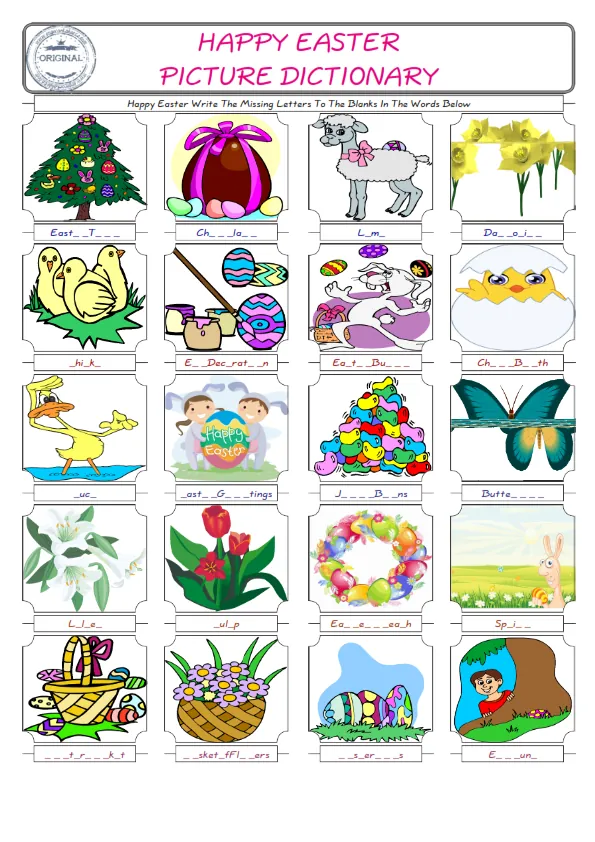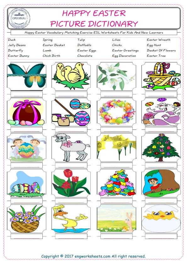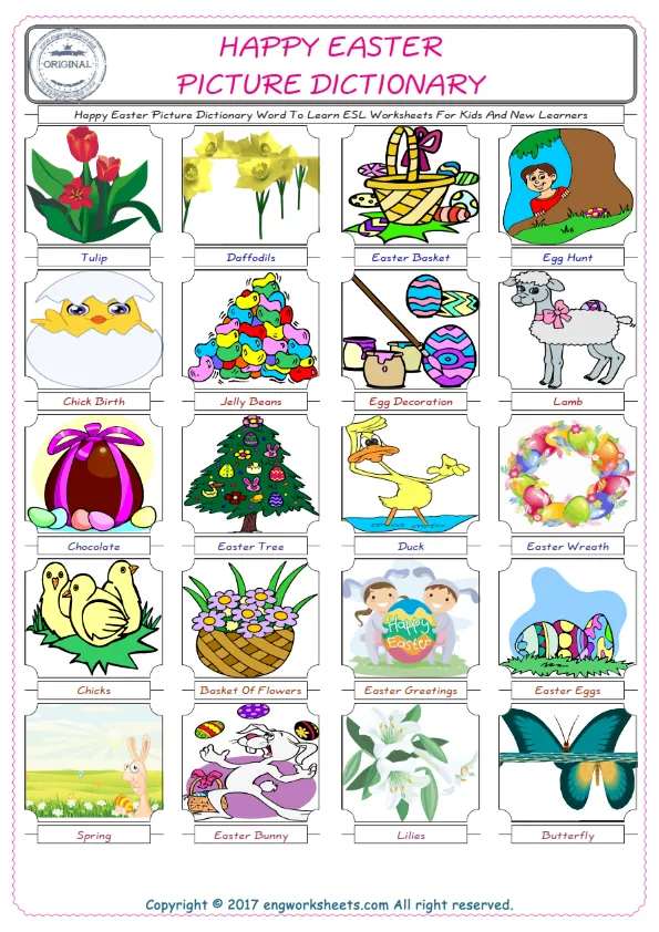 Happy Easter English Worksheet for Kids ESL Printable Picture Dictionary