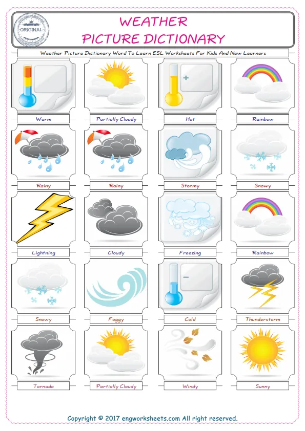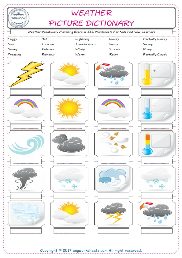 Weather English Worksheet for Kids ESL Printable Picture Dictionary
