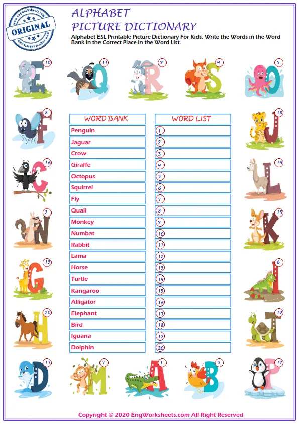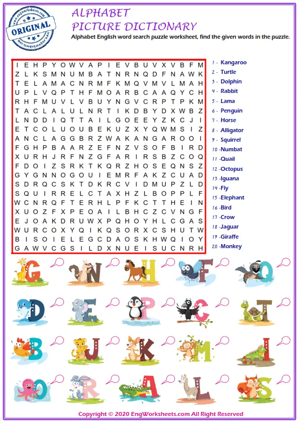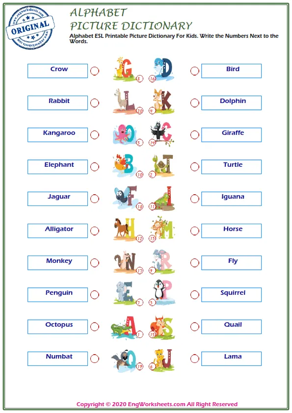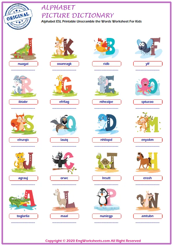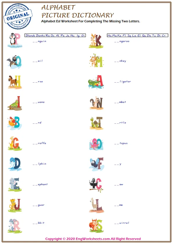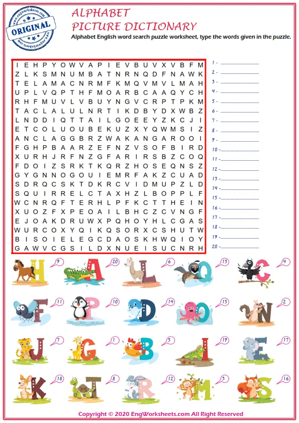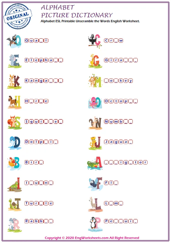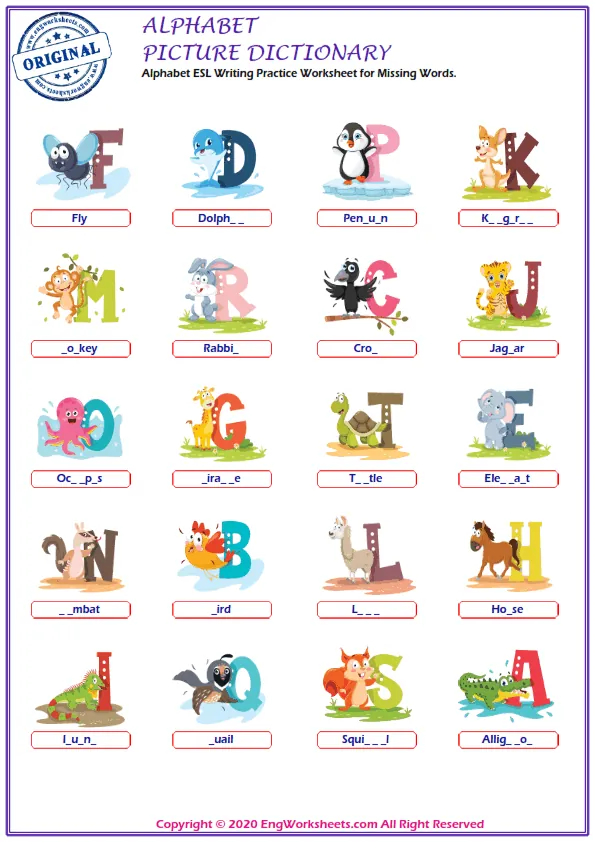 For a more challenging alphabet-related exercise, our Missing English Word Completion Worksheets or Word Matching Exercise Worksheet can help. These exercises require you to fill in the blanks or match alphabet-related words, allowing you to test your knowledge in a more advanced way.