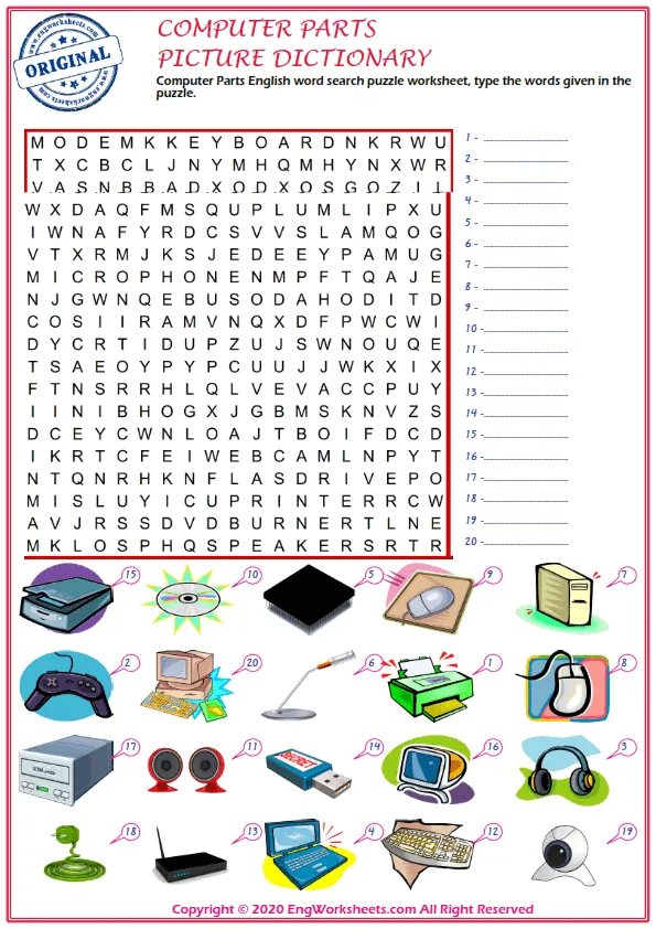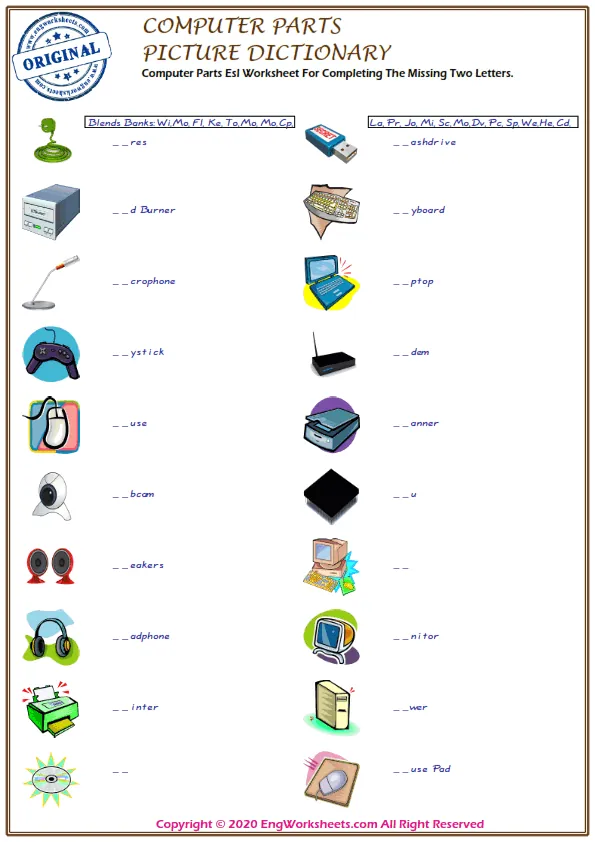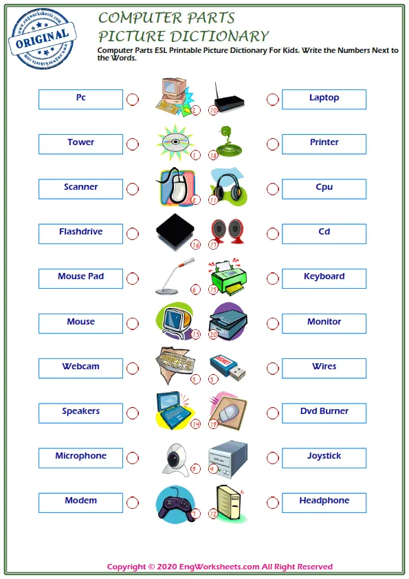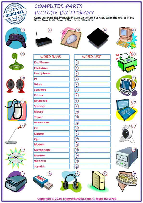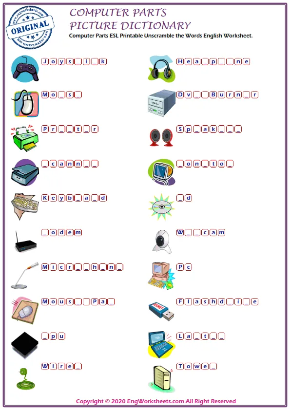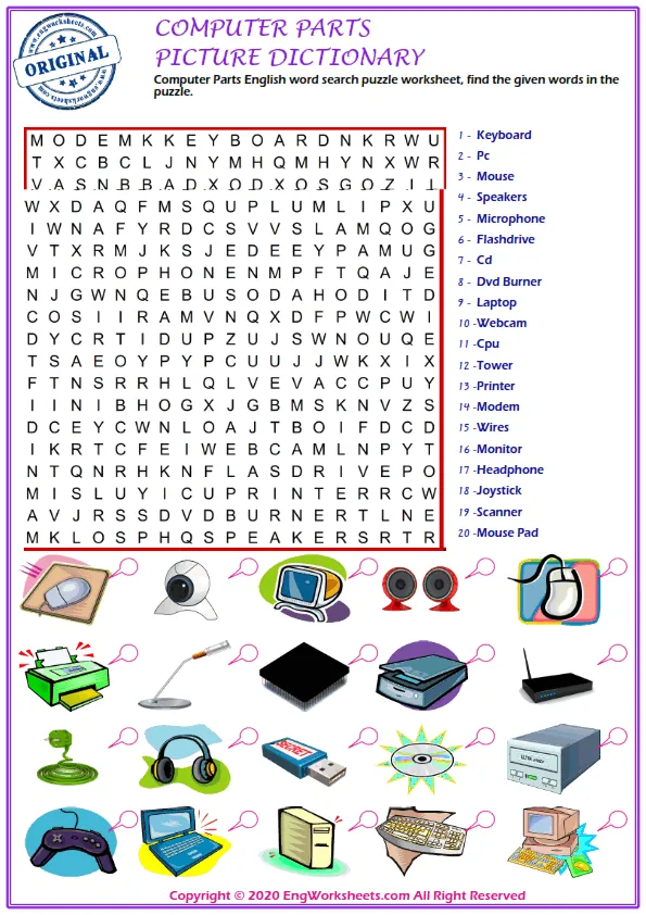 In today's digital age, having knowledge of computer parts is essential for everyone. To help improve your English language skills related to Computer Parts, we offer a range of free printable ESL vocabulary worksheets. Whether you are a teacher looking for classroom resources or a learner seeking to improve your language proficiency, our collection of Computer Parts-related worksheets has got you covered.