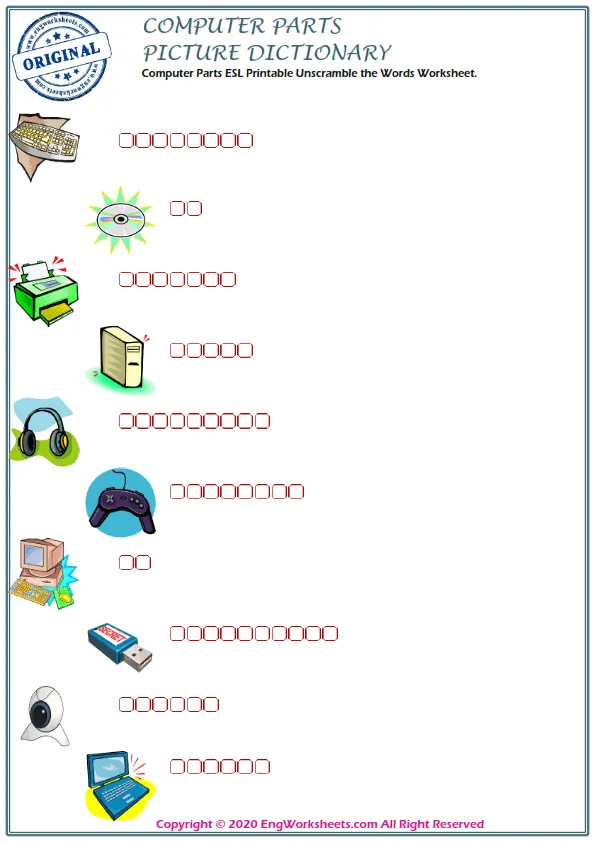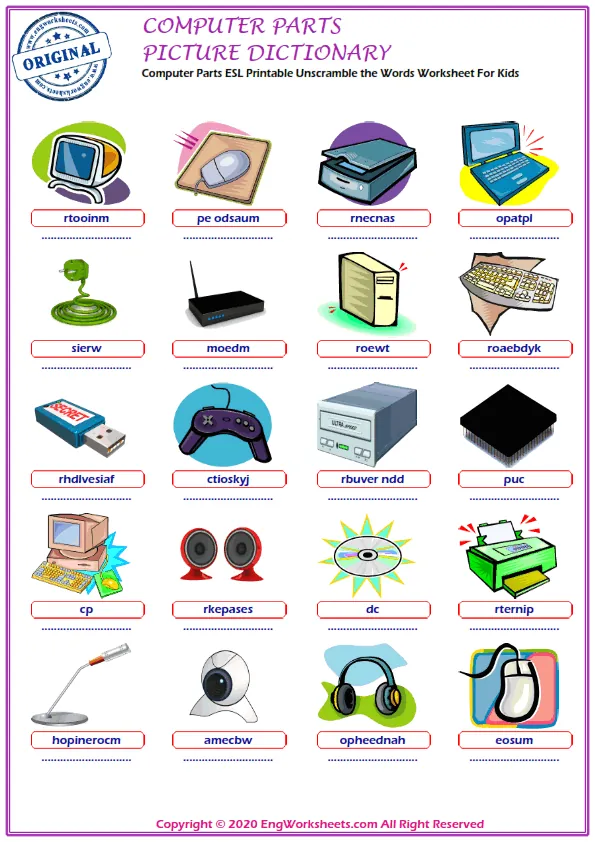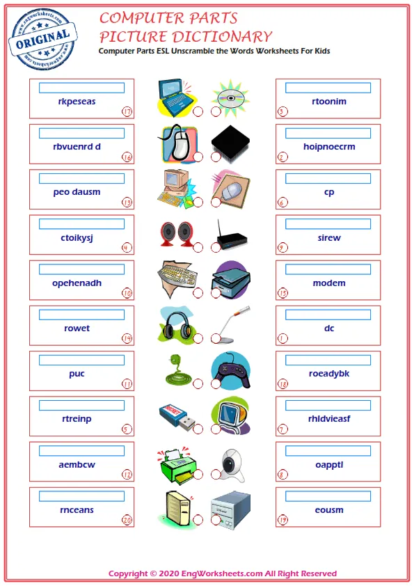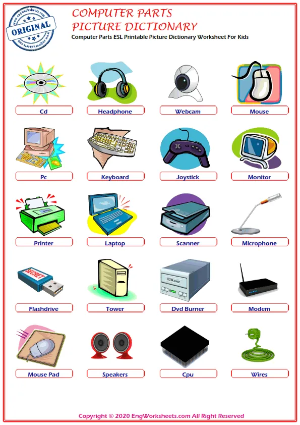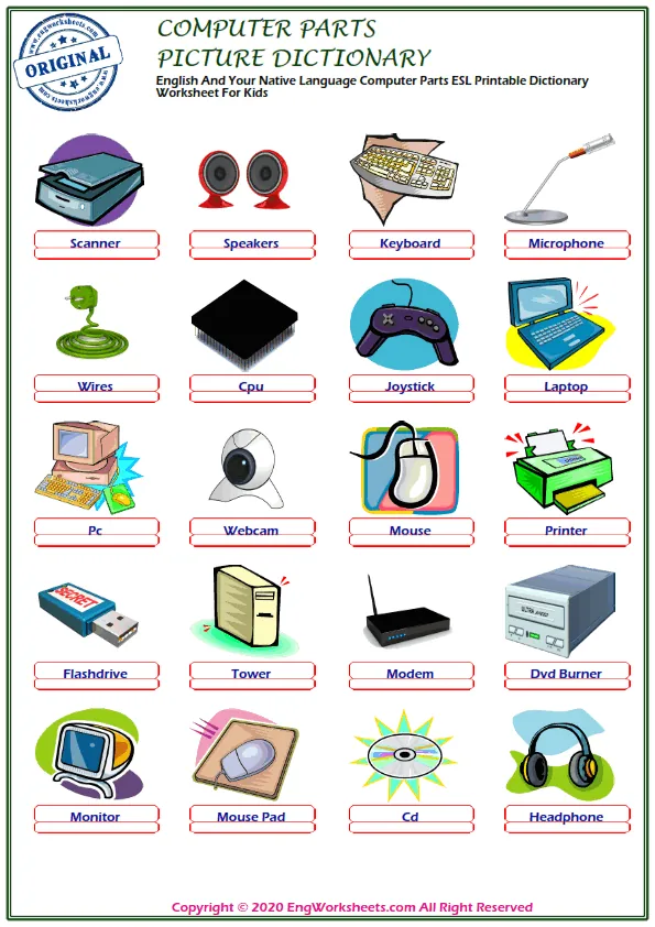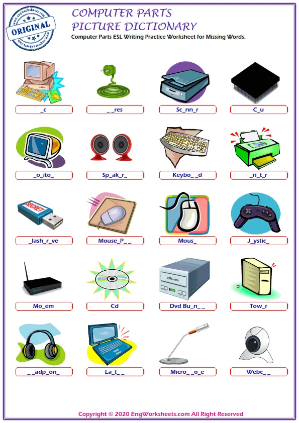 In conclusion, our collection of Computer Parts-related ESL vocabulary worksheets offers a variety of resources for learners and teachers seeking to build language proficiency. With our fun and interactive exercises, learners can enhance their vocabulary and communication skills related to Computer Parts while having fun.