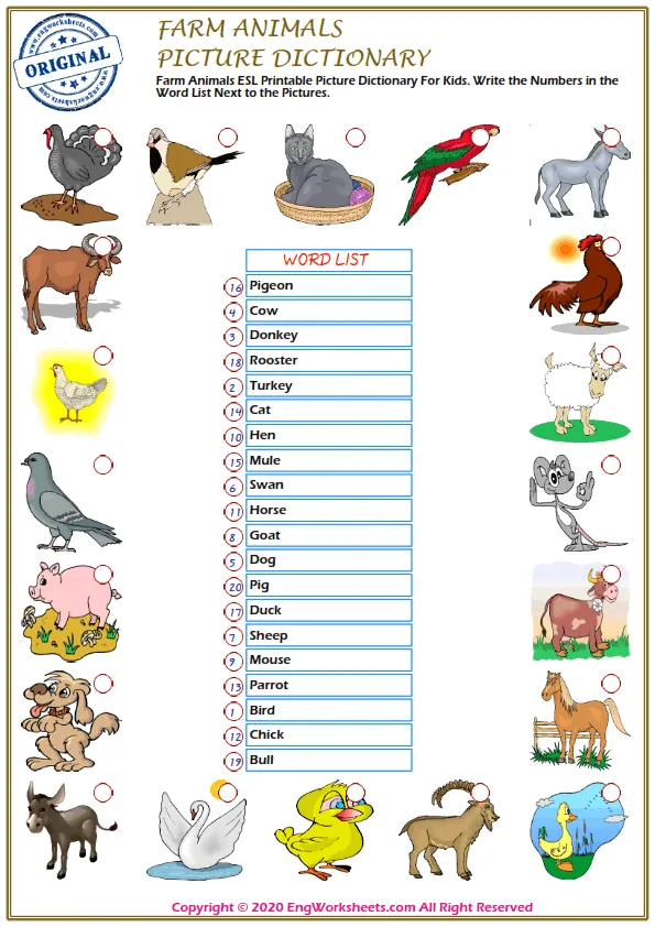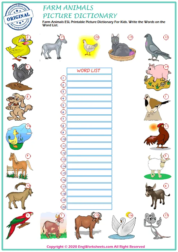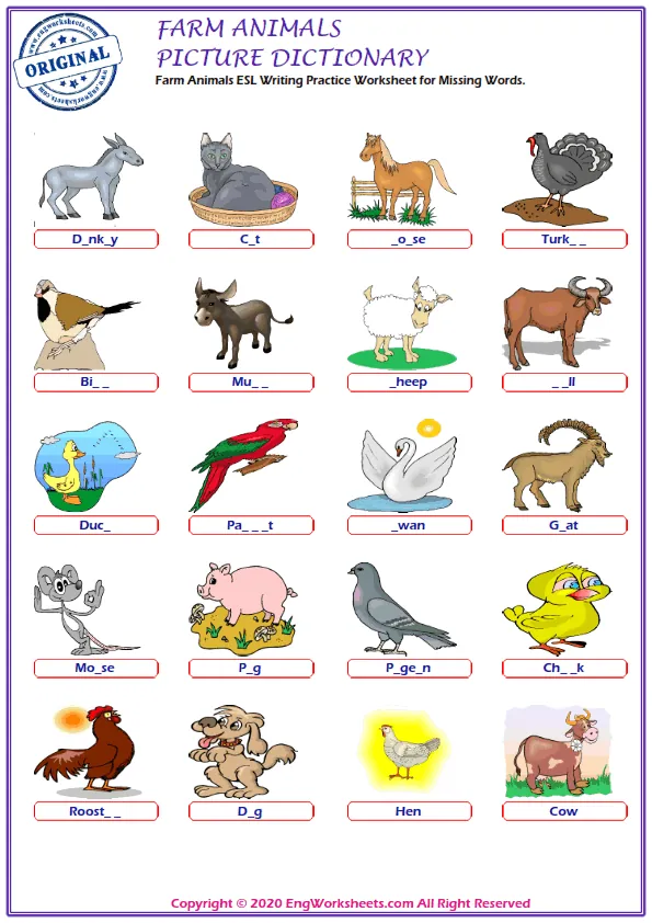 Overall, our farm animal-themed ESL vocabulary learning exercises are designed to engage and challenge students while also reinforcing their knowledge of these important creatures. Try them out today and see how they can enhance your classroom instruction!