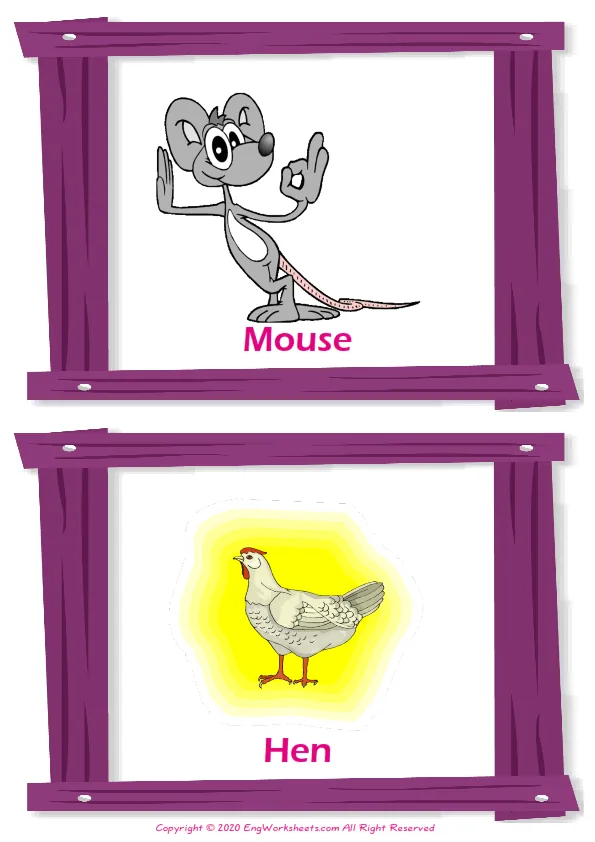 For classroom use, we offer English-language posters that showcase different farm animals along with their names in bold text. These posters can be hung on walls or bulletin boards to serve as a visual aid for students to reference throughout the day.