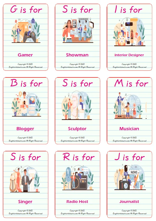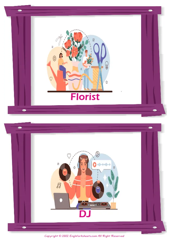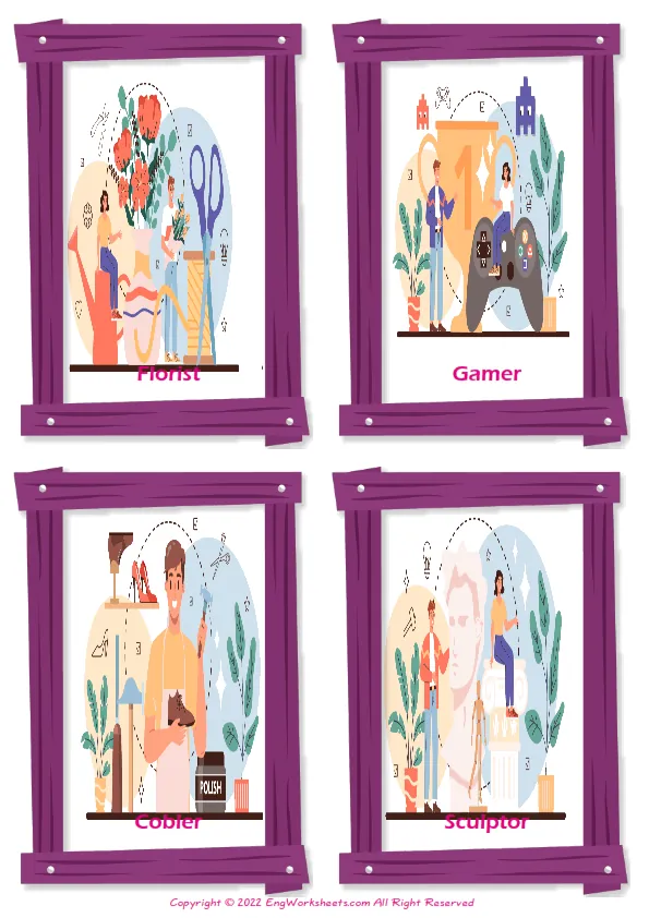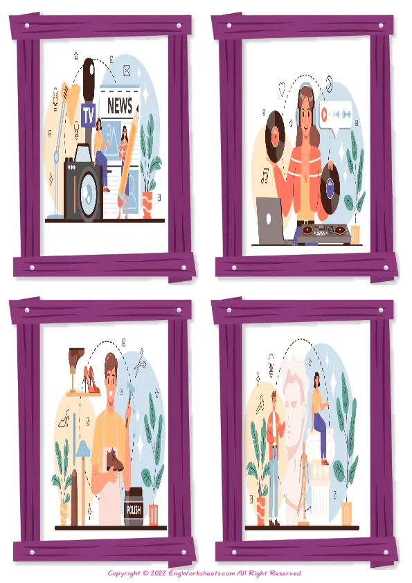 Another Artistic Occupation ESL printable English resource is Classroom Posters in English. These posters are perfect for decorating your classroom while also helping your students learn new vocabulary. You can hang them on the walls to provide a visual aid for students and make English learning more engaging.