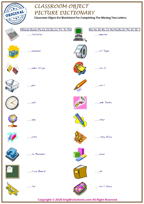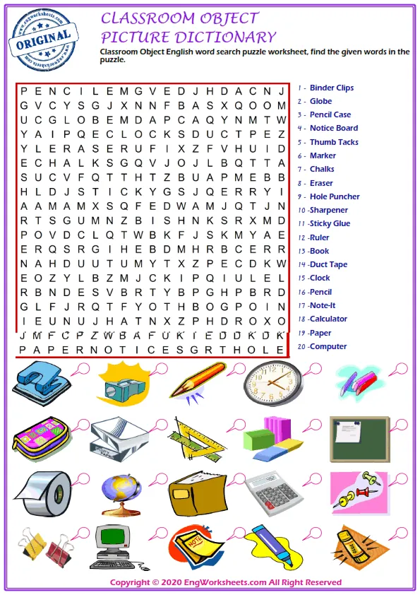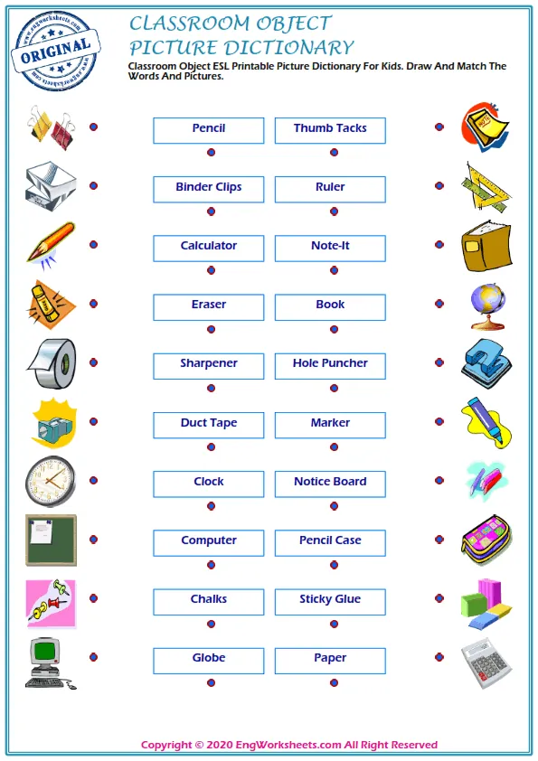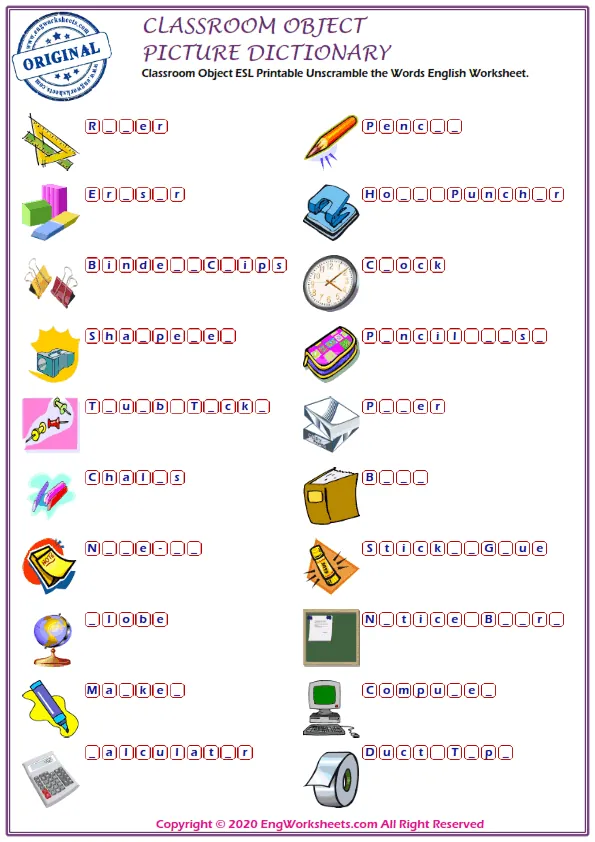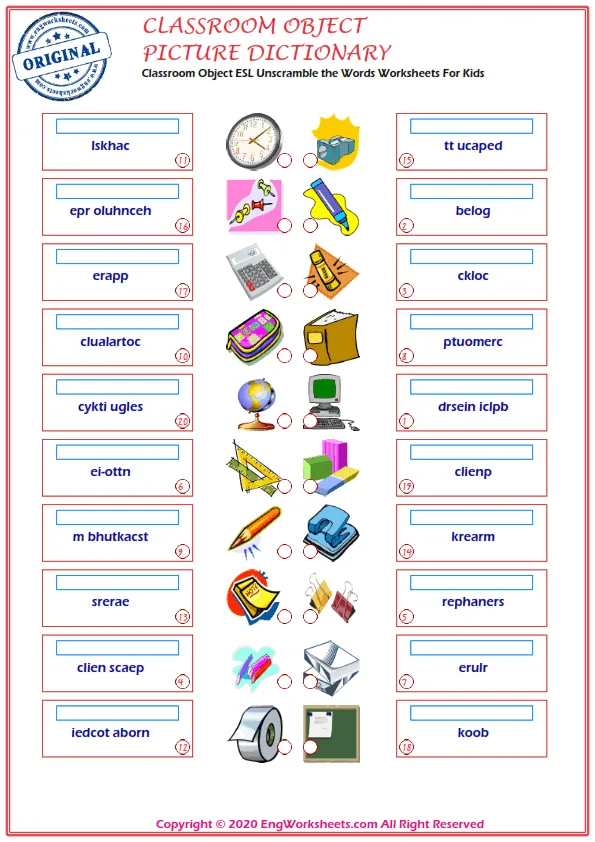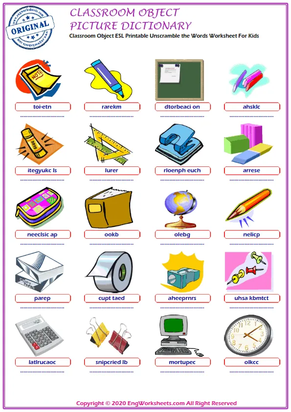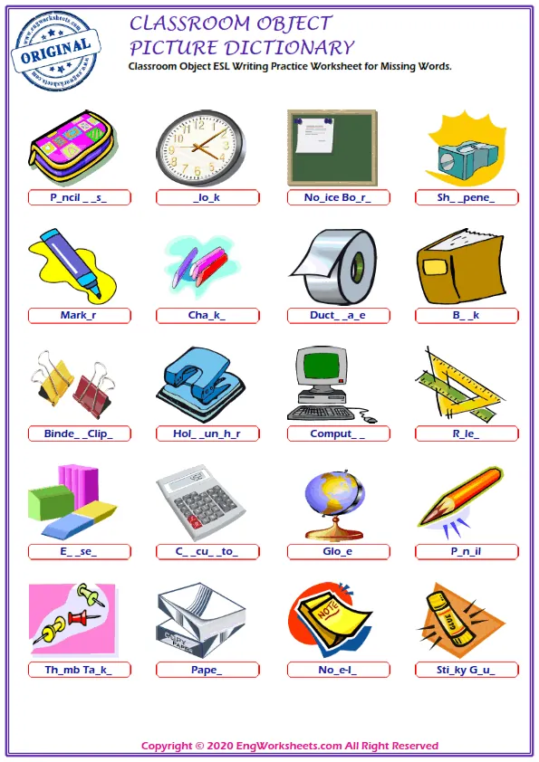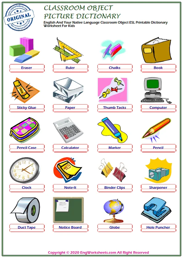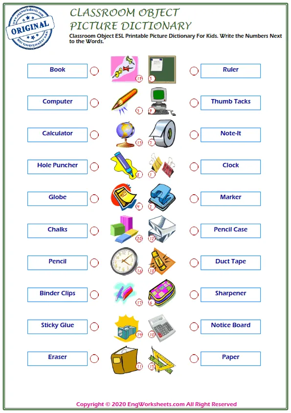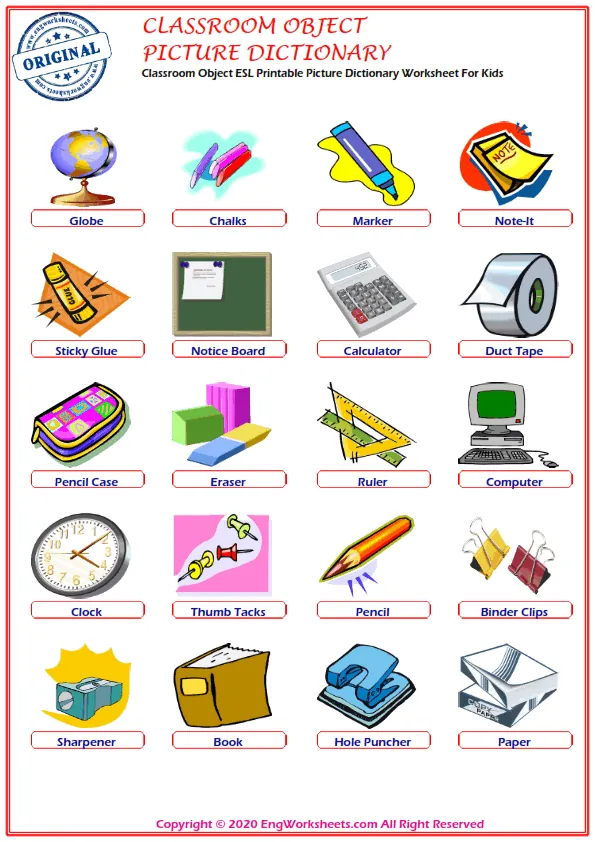 Boost your students' English language skills with these engaging Classroom Objects Free Printable ESL Vocabulary Worksheets. Our collection features a variety of educational resources that will make learning about classroom objects both enjoyable and effective. With SEO in mind, we'll discuss the various worksheet types, ensuring that "Classroom Objects" is included in every paragraph.