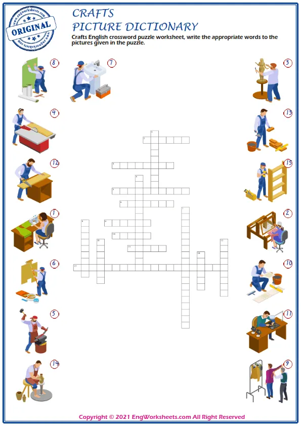 Our Crafts-themed Illustrated Crossword Worksheet is a fun and interactive way to learn new words related to Crafts. It features colorful illustrations and challenging clues that help you to practice and reinforce your understanding of Crafts-related vocabulary.