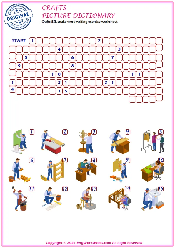 If you're looking for a more interactive Crafts-themed learning experience, our Word Search Puzzle Worksheet or Word Snake Puzzle Worksheet may be just what you need. These puzzles challenge you to find Crafts-related words hidden within a grid or snake of letters, helping you to improve your vocabulary and spelling skills.