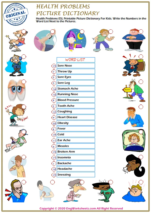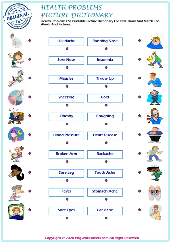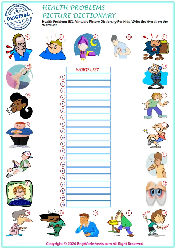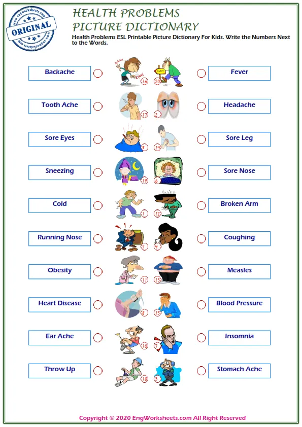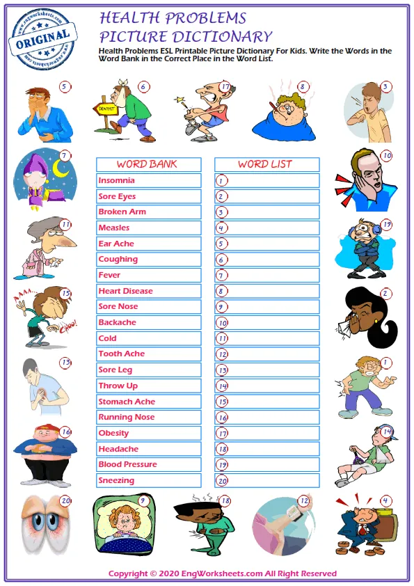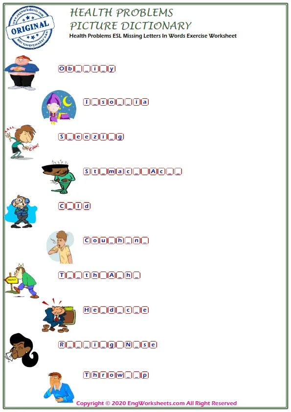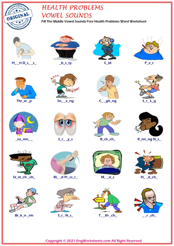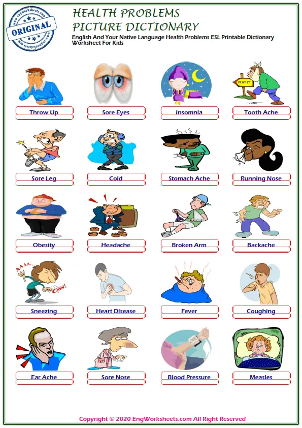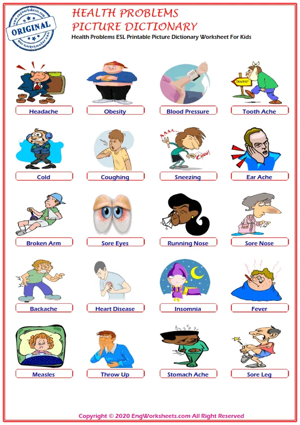 Looking for free printable English ESL vocabulary worksheets on health problems? Look no further! We have a wide variety of resources that can help you or your students learn about health problems in a fun and engaging way.