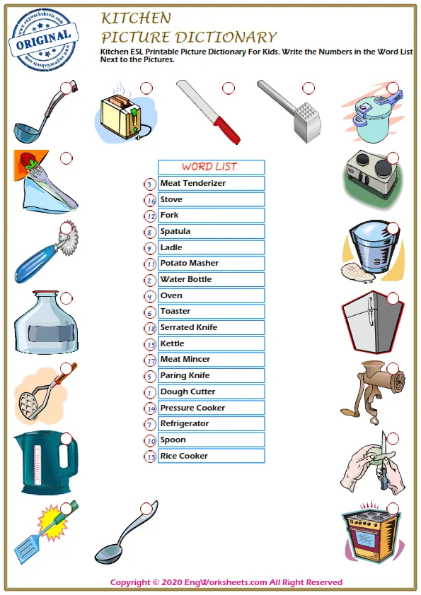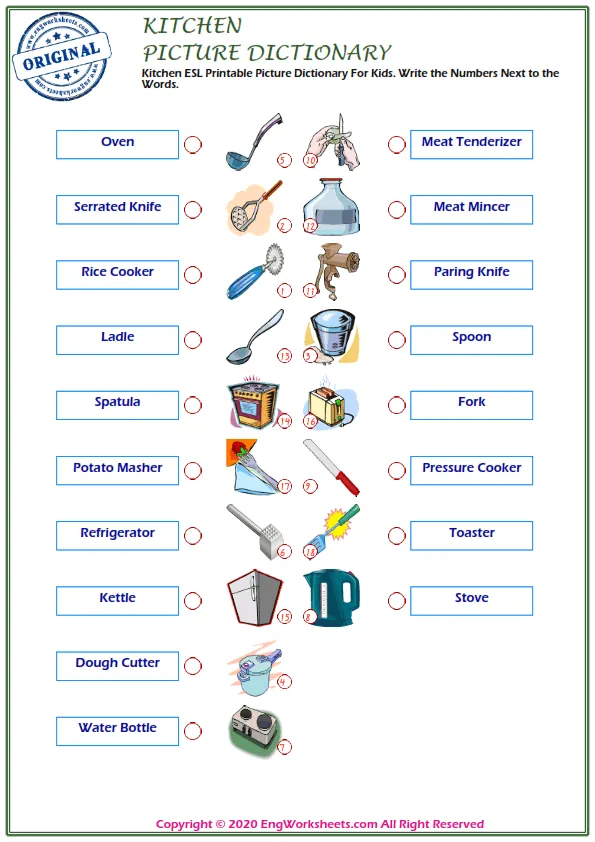 If you're looking for fun and engaging ways to learn English vocabulary related to the kitchen, look no further! We've put together a collection of free printable worksheets and exercises that are perfect for ESL learners of all levels.