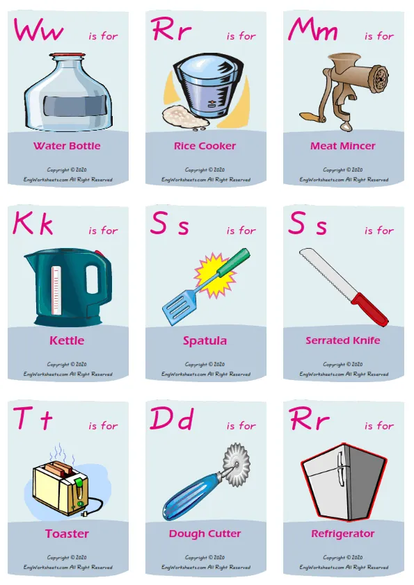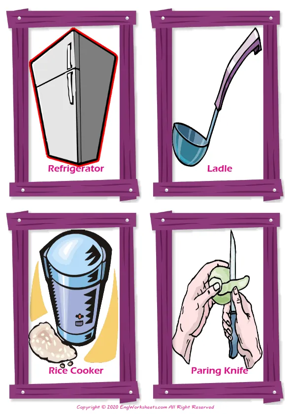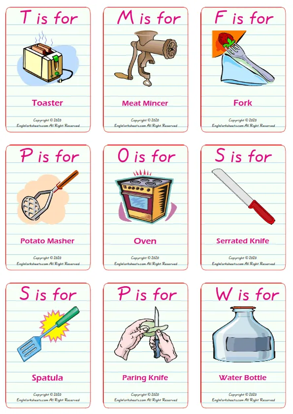 Next, we have a set of classroom posters in English that feature commonly used kitchen vocabulary. These posters are a great visual aid for learners to refer to as they study and practice new words related to the kitchen. They can also serve as a helpful reminder for everyday use in the kitchen.