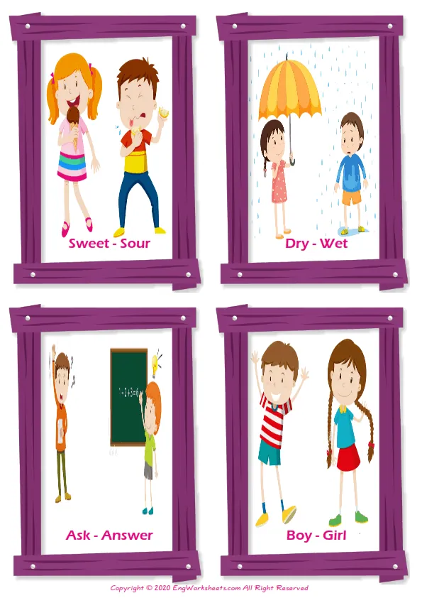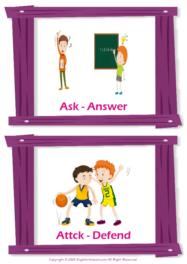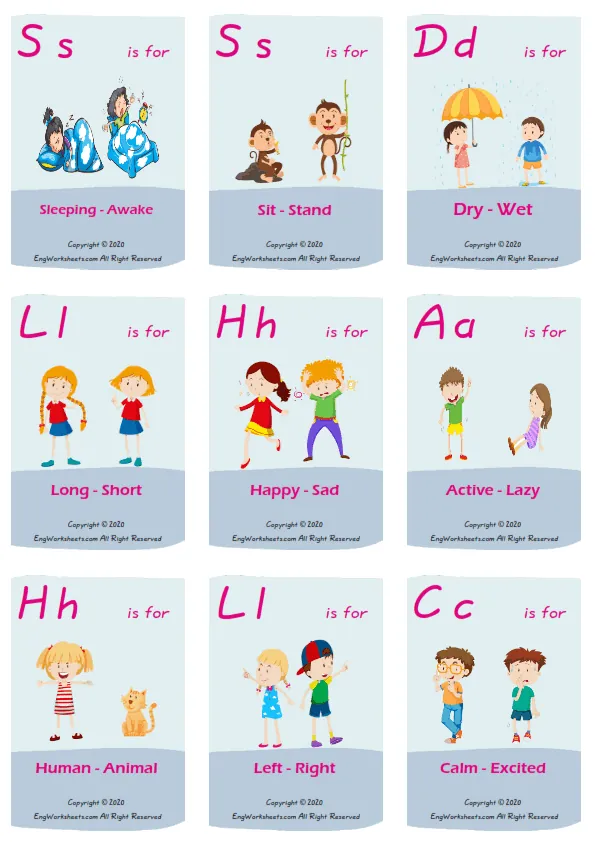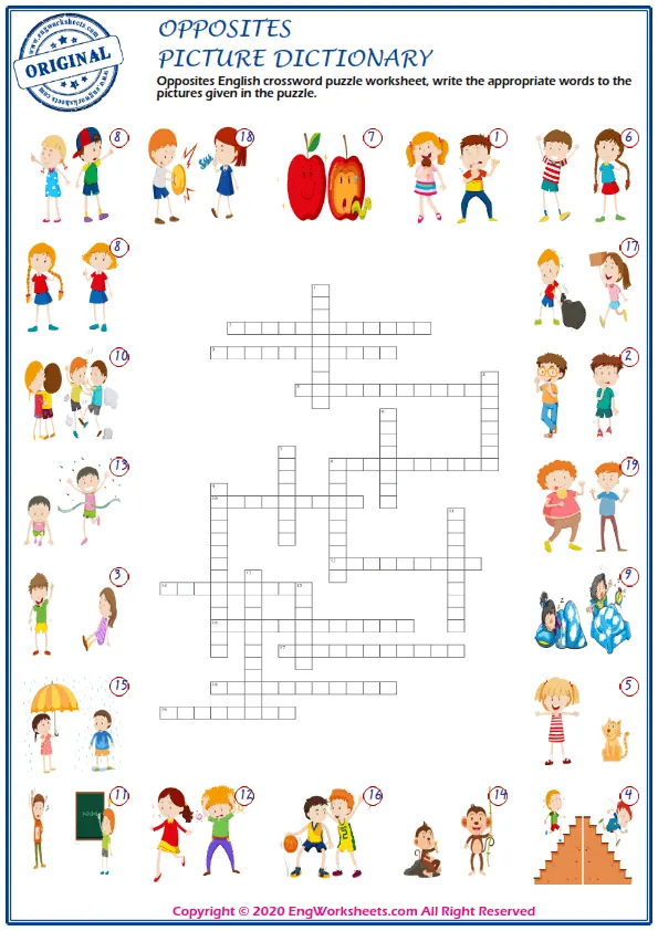 Discover useful Opposites free printable English ESL vocabulary worksheets for students. These illustrated workbooks contain crossword puzzles, word searches, matching exercises, and other activities for learning antonyms.