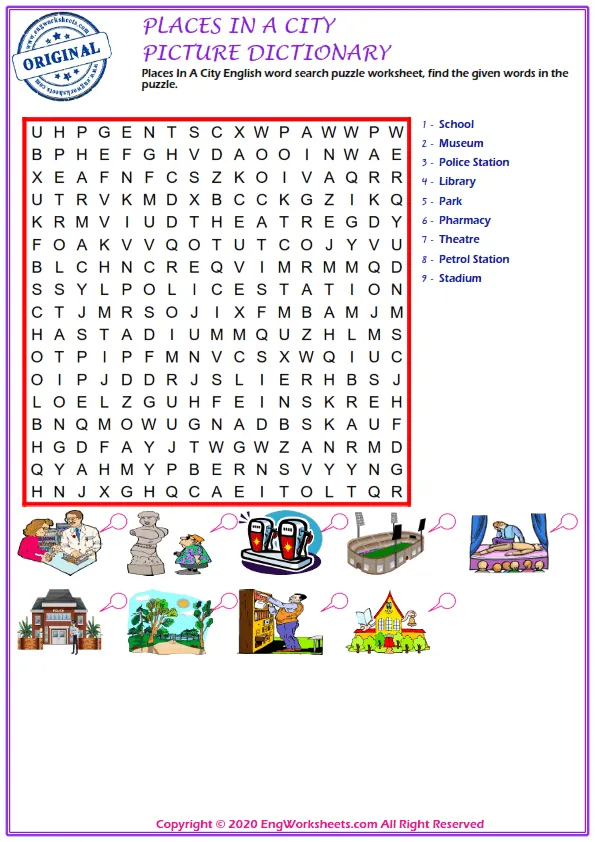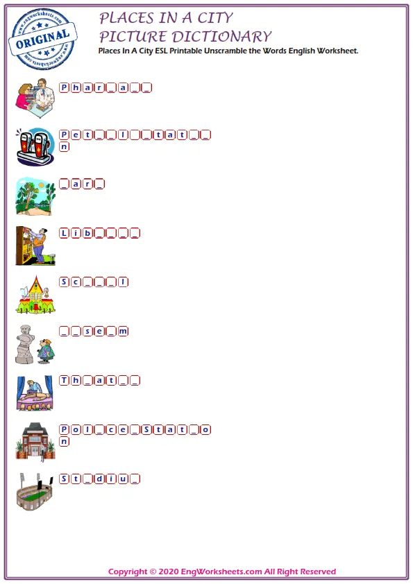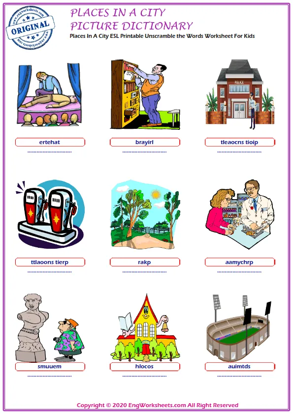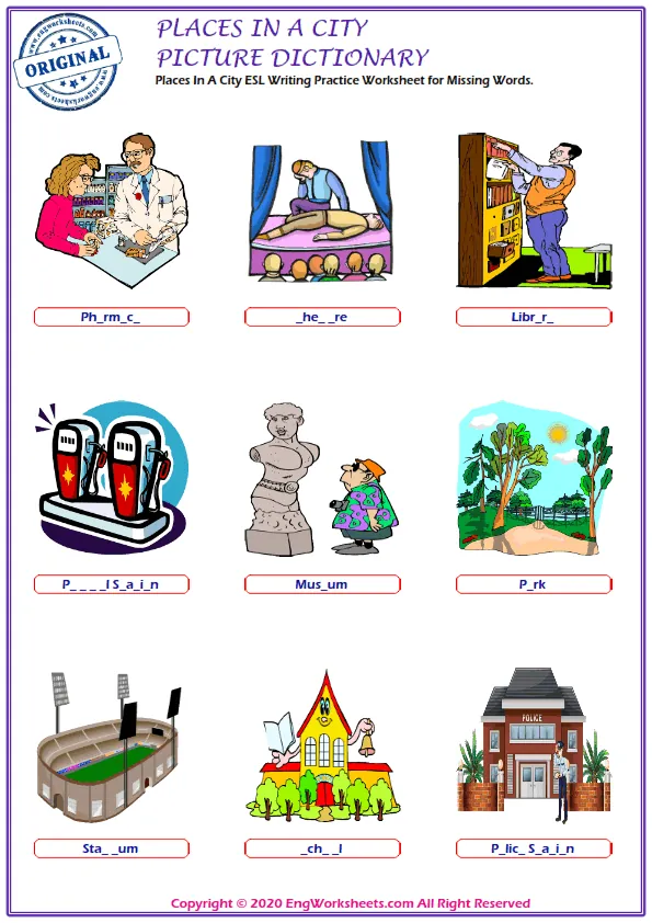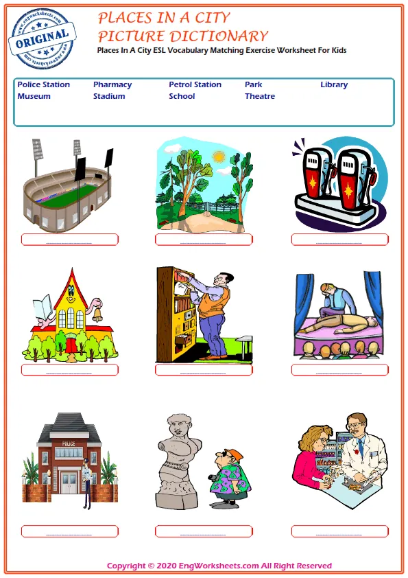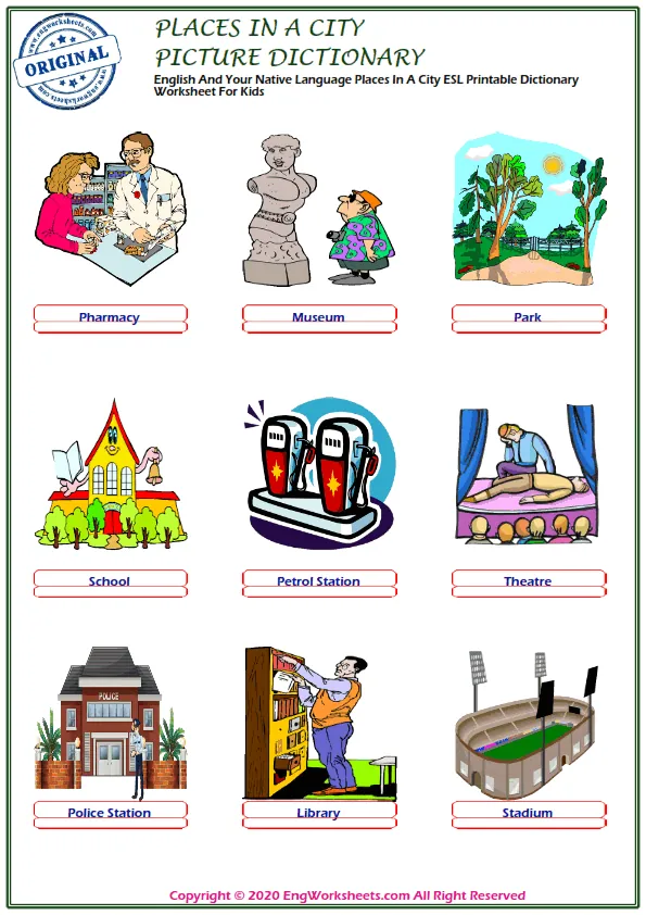 So if you're looking for ways to improve your English vocabulary related to Places In A City, try our free printable worksheets and exercises today!