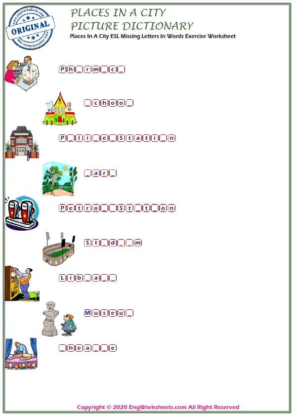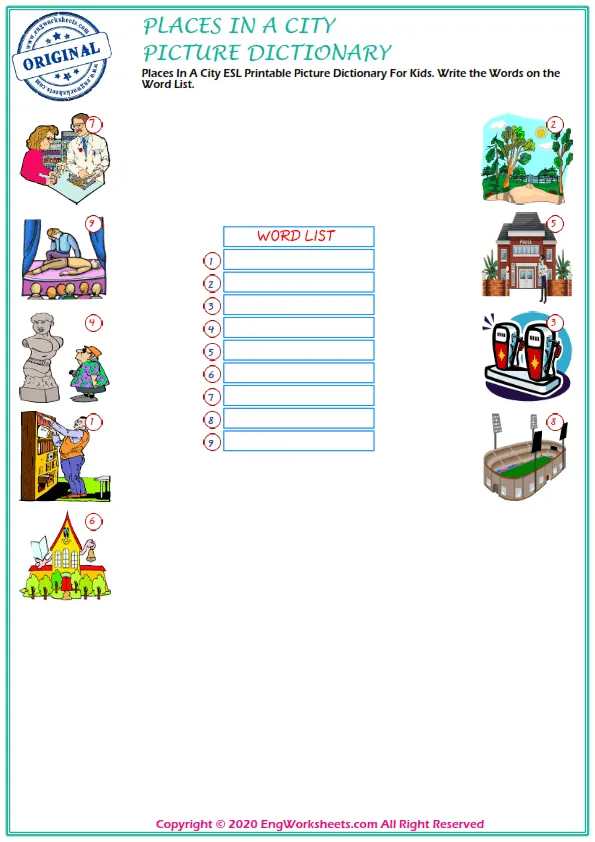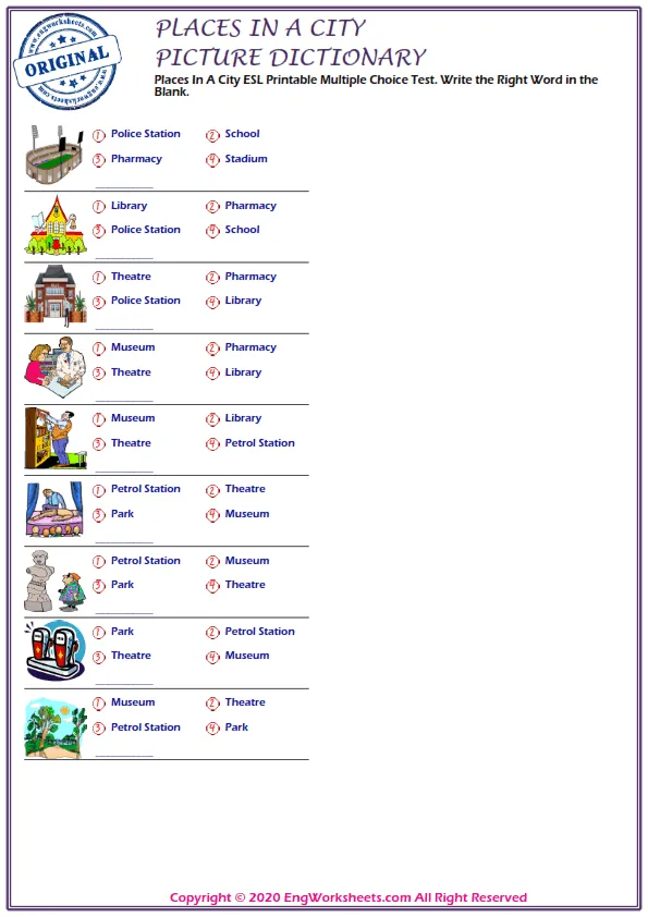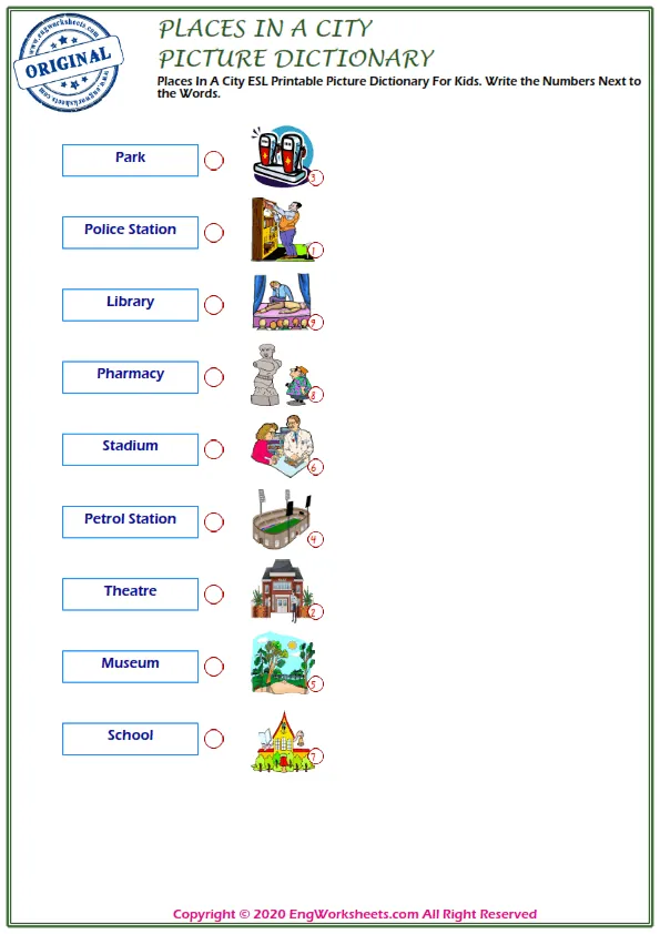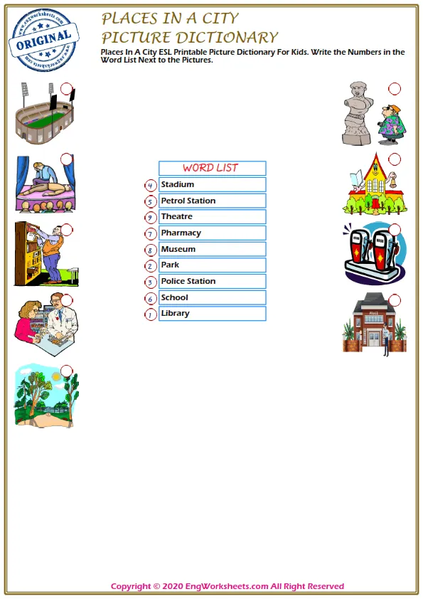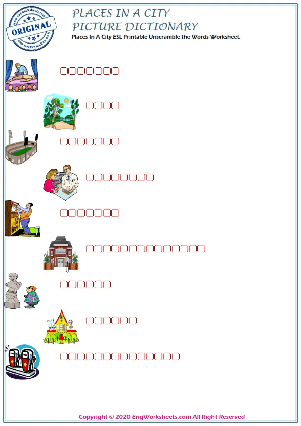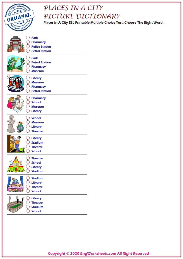So if you're looking for ways to improve your English vocabulary related to Places In A City, try our free printable worksheets and exercises today!