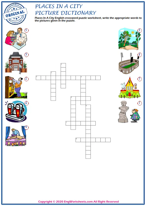 Our illustrated crossword worksheet is a great way to test your knowledge of different places in a city, from parks and museums to restaurants and shops. With colorful pictures and clues, this worksheet is both fun and educational.