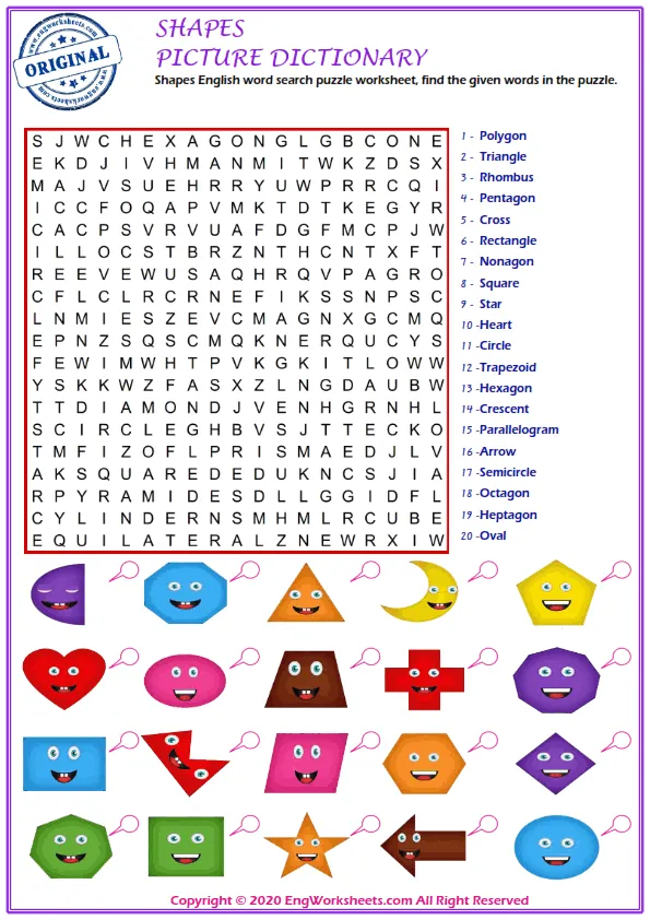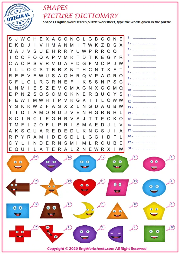 For a more interactive approach to learning vocabulary related to shapes, Word Search Puzzle Worksheets and Word Snake Puzzle Worksheets can be highly effective. These worksheets involve searching for hidden shape names or tracing shape names in a snake-like manner, respectively. These exercises can help students develop their critical thinking and problem-solving skills while also building their vocabulary.