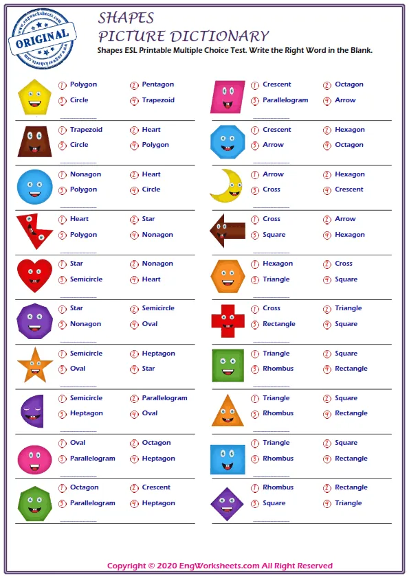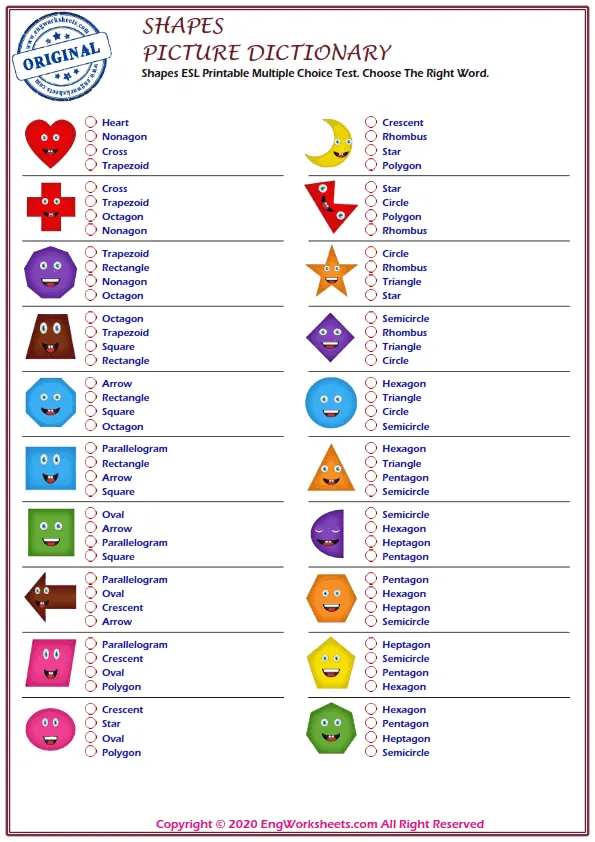 Finally, Multiple Choice English Tests can provide a more formal assessment of a student's knowledge and understanding of shapes in English. These tests can be used by teachers to evaluate their students' progress or by individuals who want to test their own knowledge of shapes.