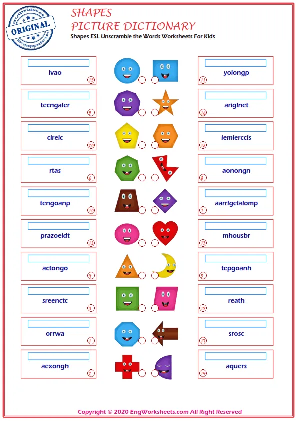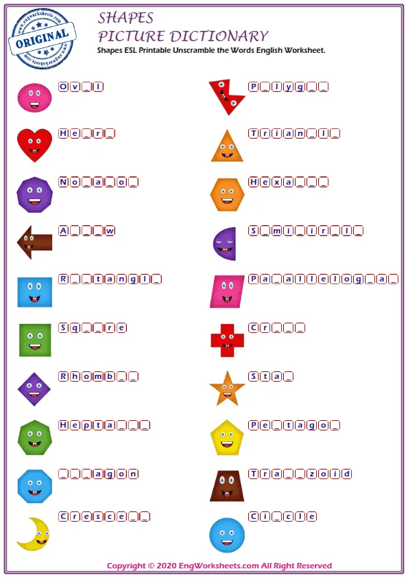 Shapes are an important concept in early childhood education, and learning about them can be fun and engaging with Shapes Free Printable English ESL Vocabulary Worksheets. These worksheets are designed to help students develop their vocabulary skills related to different shapes through a variety of interactive and engaging activities.