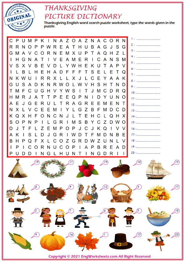 Word search and word snake puzzles are also great activities for Thanksgiving. These worksheets challenge students to find Thanksgiving-themed words hidden in a grid or to connect the letters to create words related to the holiday. These exercises can help improve students' vocabulary skills and their ability to recognize and spell words.