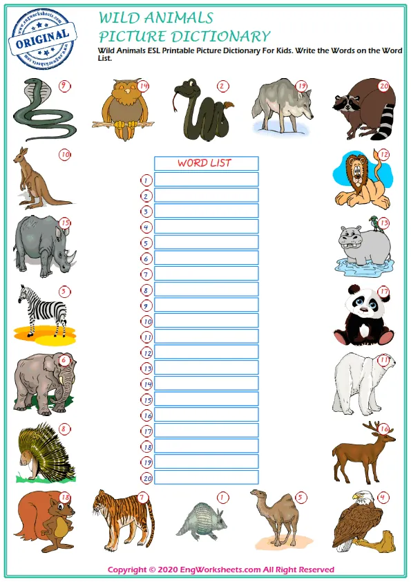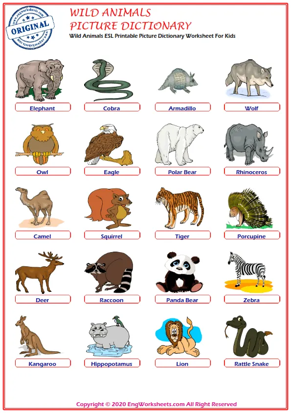 Wild Animals are fascinating creatures, and learning the vocabulary associated with them is essential for effective communication. That's why we offer a variety of wild animal-themed resources to help you expand your vocabulary and improve your language skills.